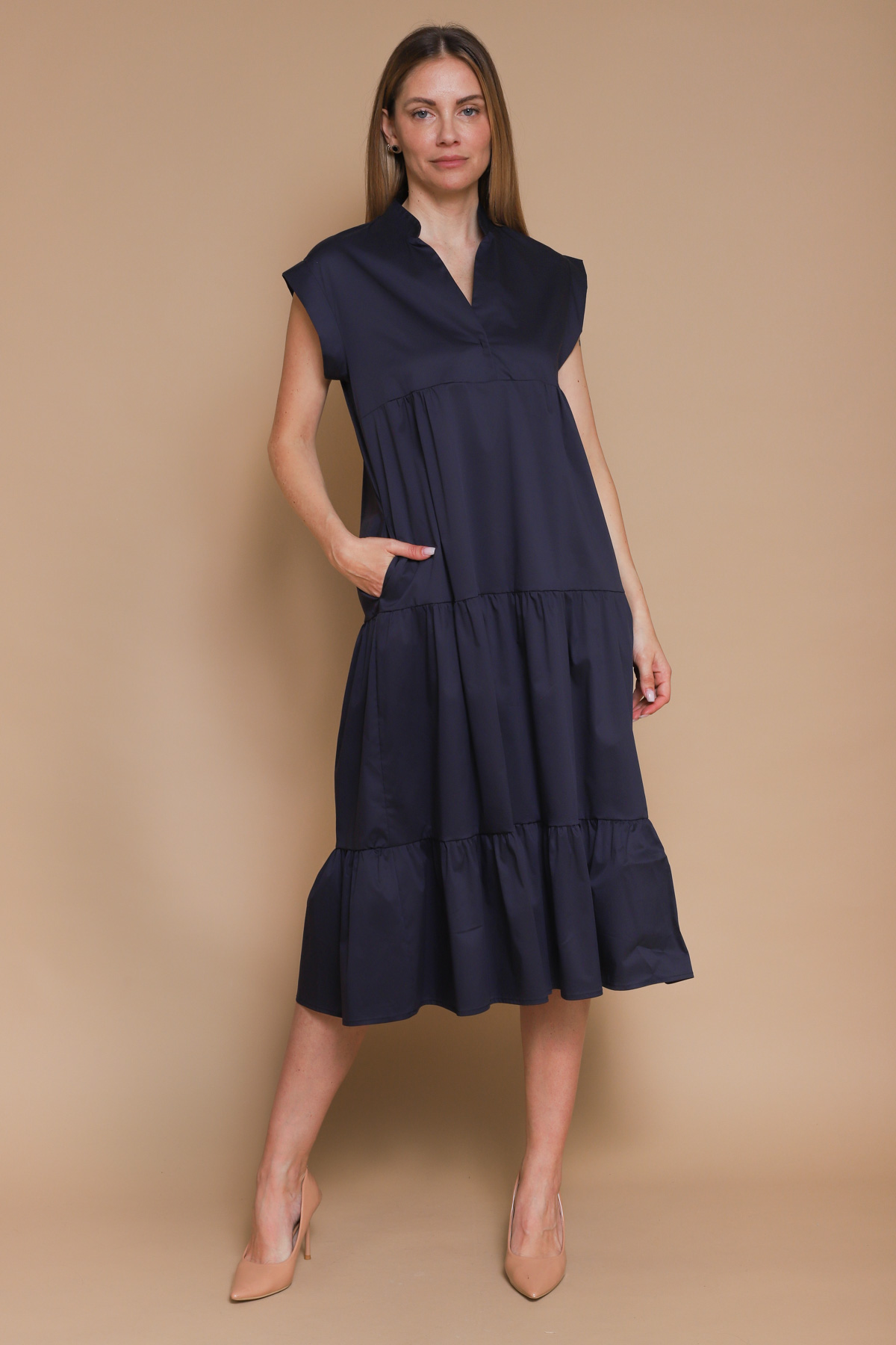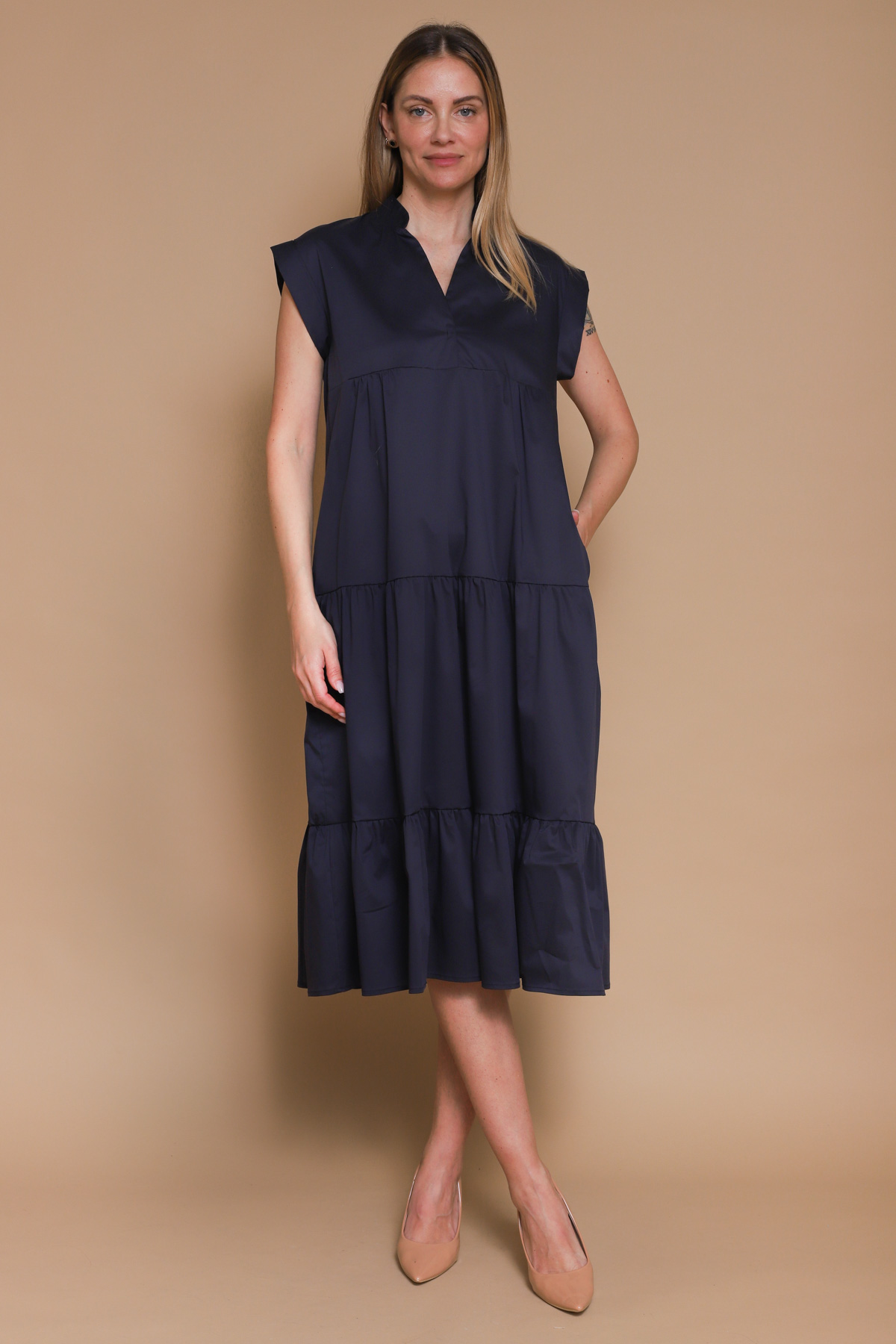 ABITO LUNGO CON BALZE IN COTONE