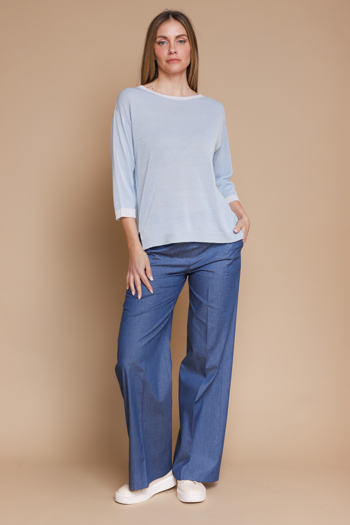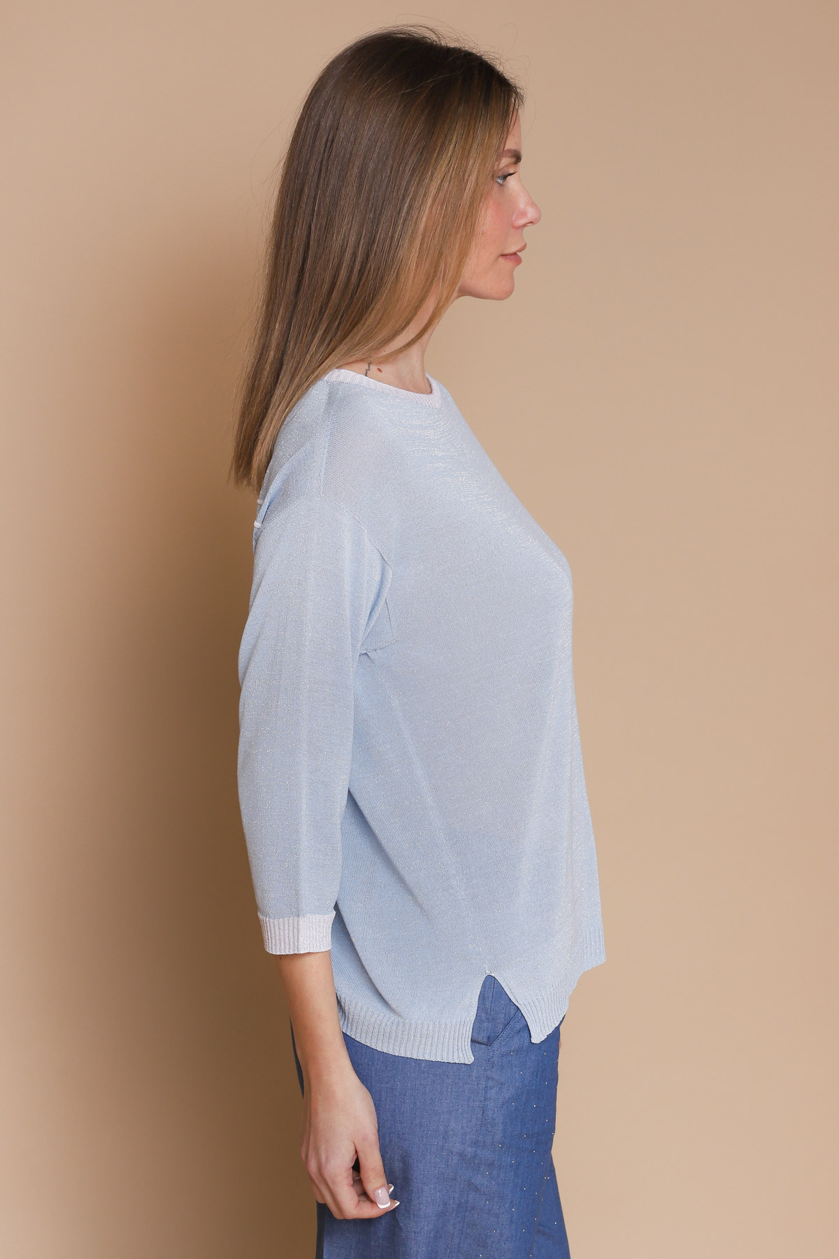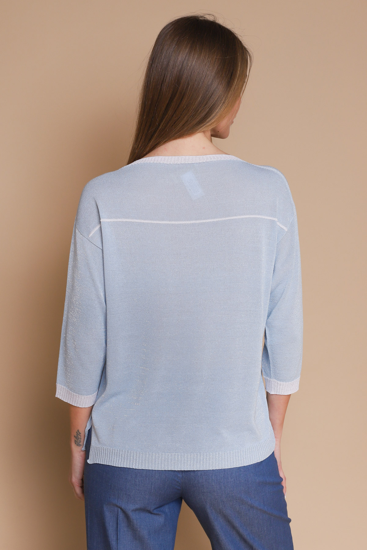 HOME > CLOTHING > KNITWEARS > MAGLIA VISCOSA E LUREX CON PROFILI IN CONTRASTO