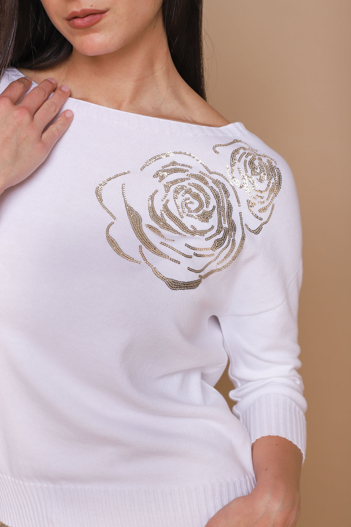 MAGLIA 100% COTONE CON RICAMO ROSE