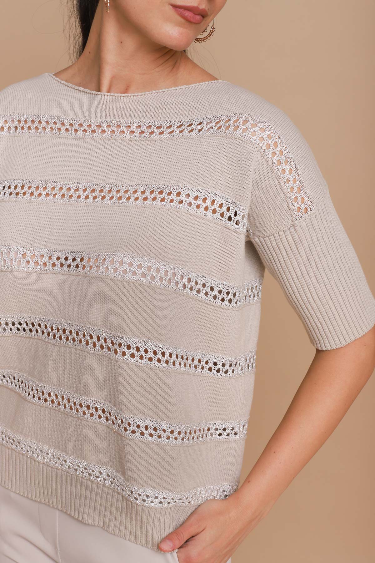 MAGLIA A RIGHE CON TRAFORATURE