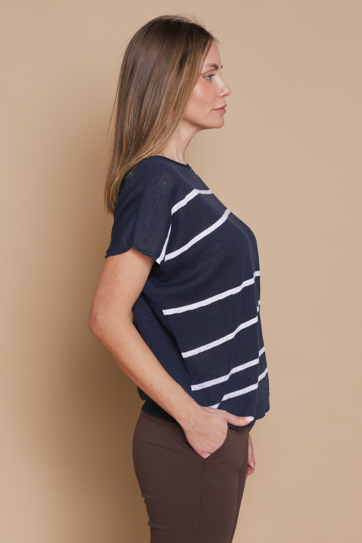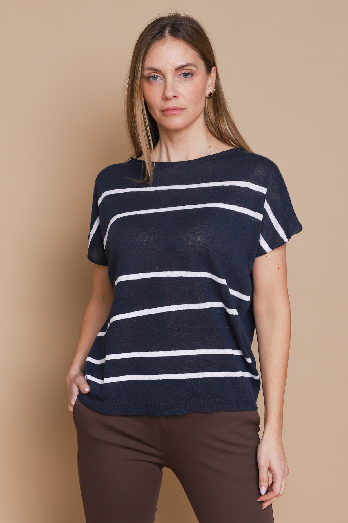 MAGLIA A RIGHE IN LINO E COTONE