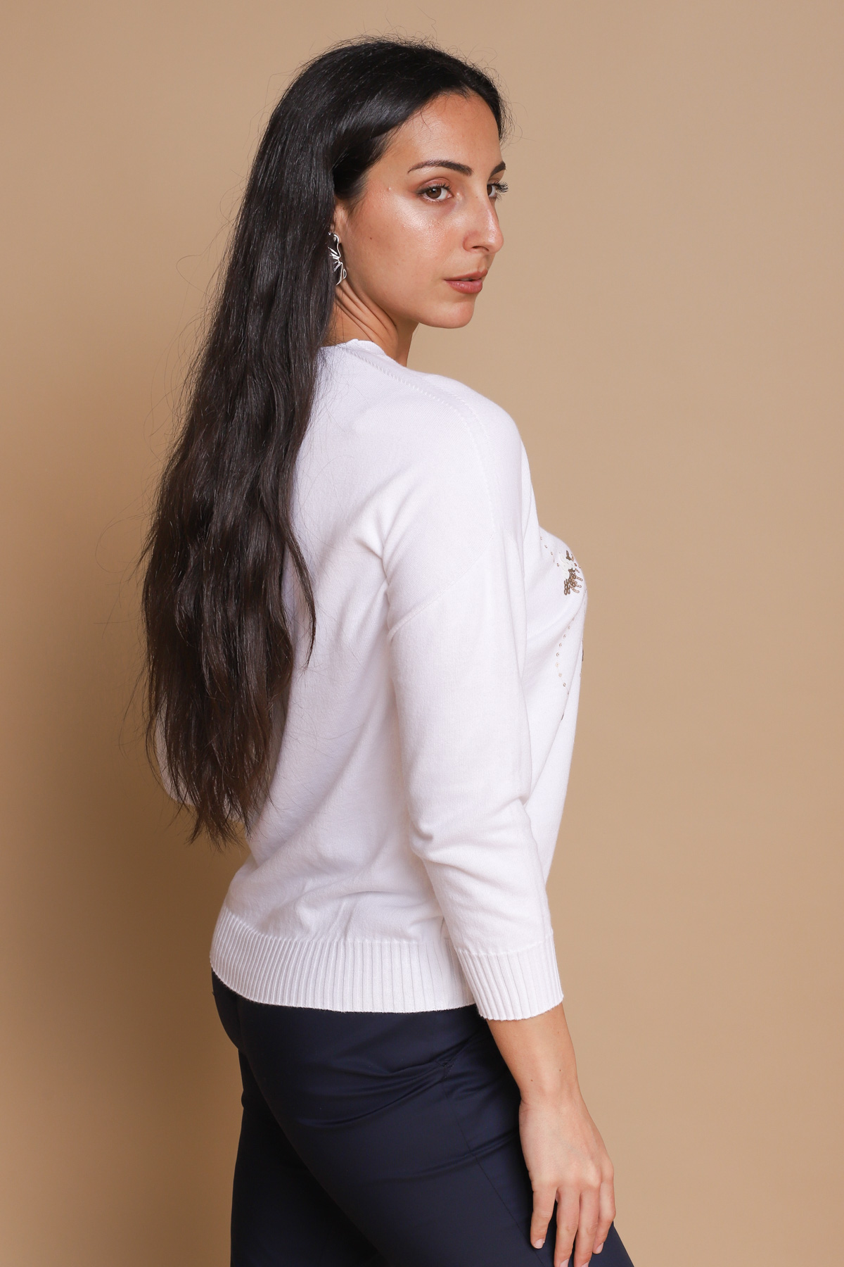 MAGLIA A V CON PAILLETTES 100% COTONE