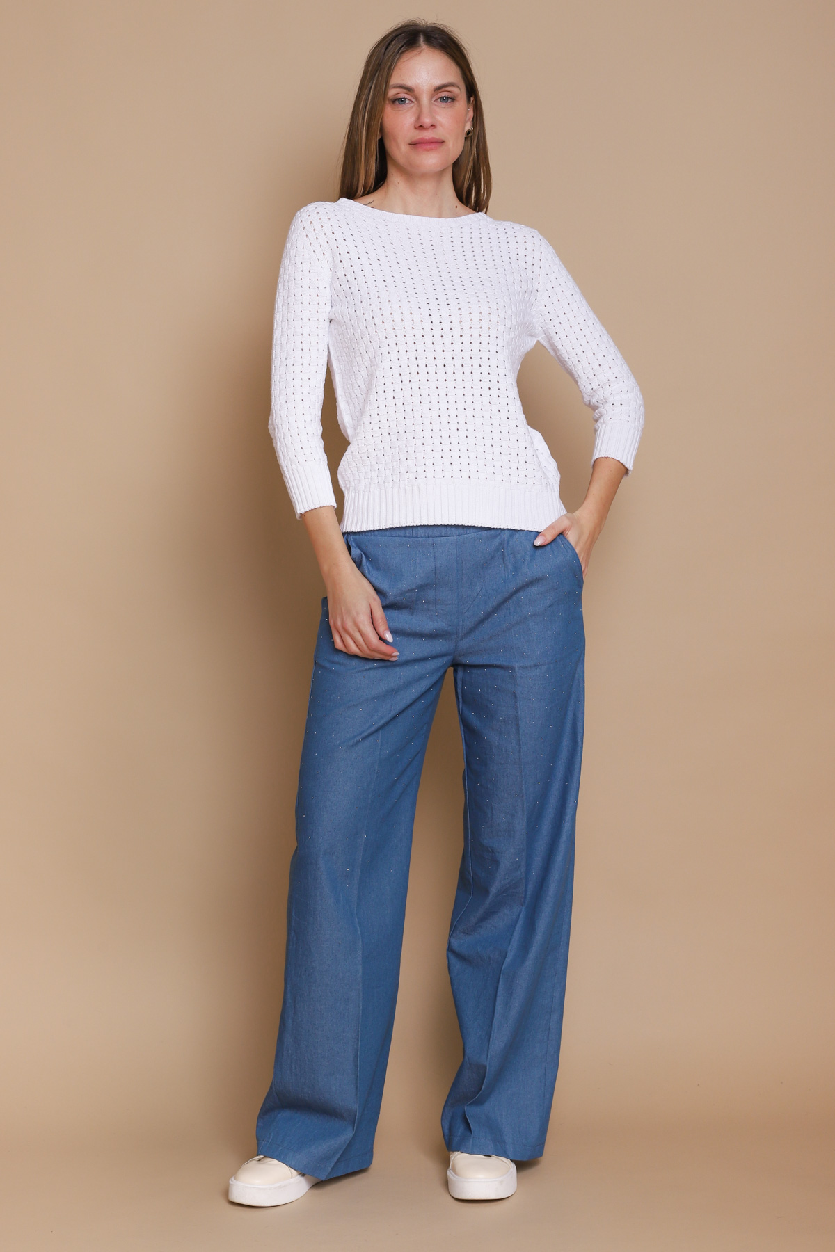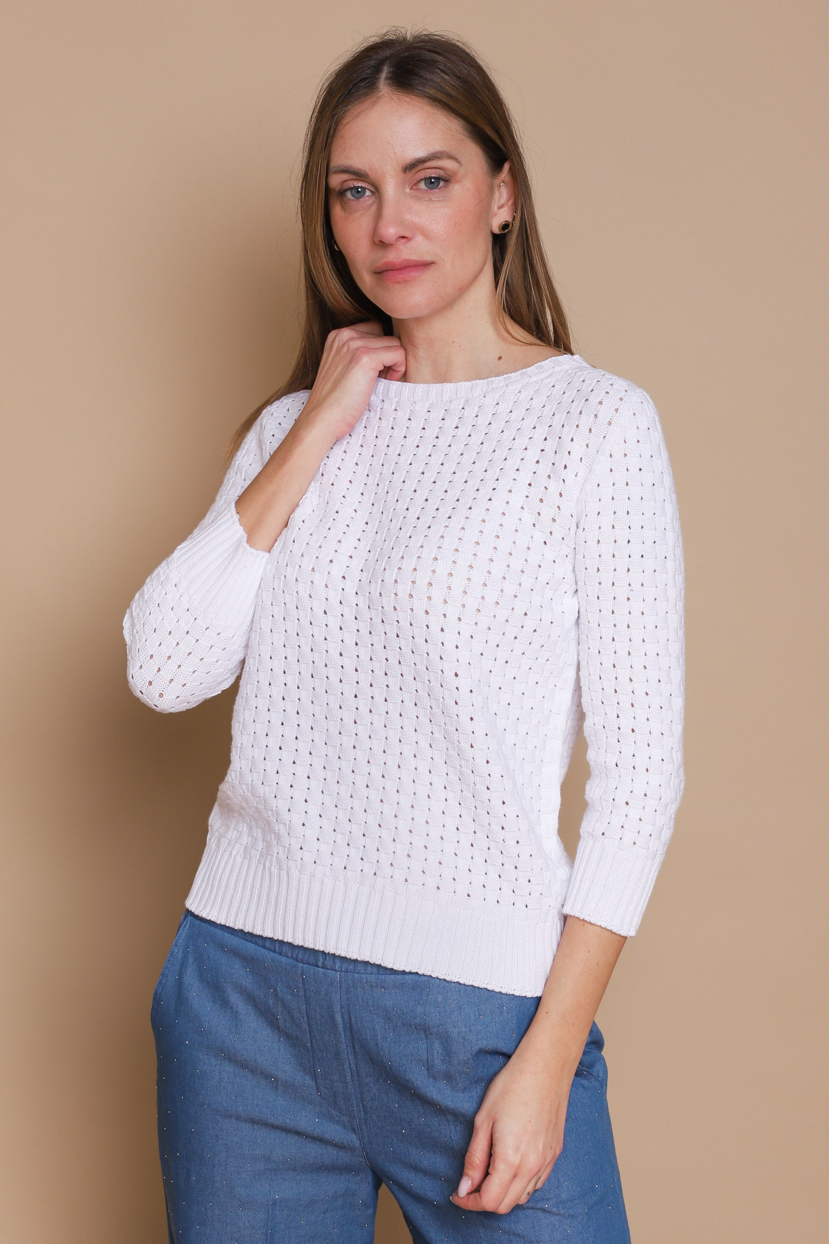 MAGLIA IN COTONE CON LAVORAZIONE PUNTO CANESTRO