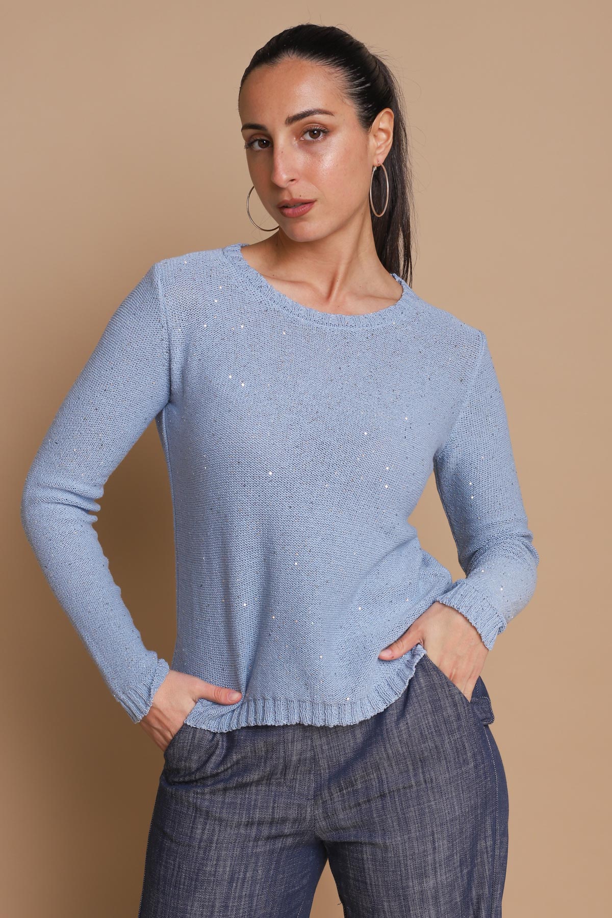 MAGLIA IN COTONE CON MICRO PAILLETTES