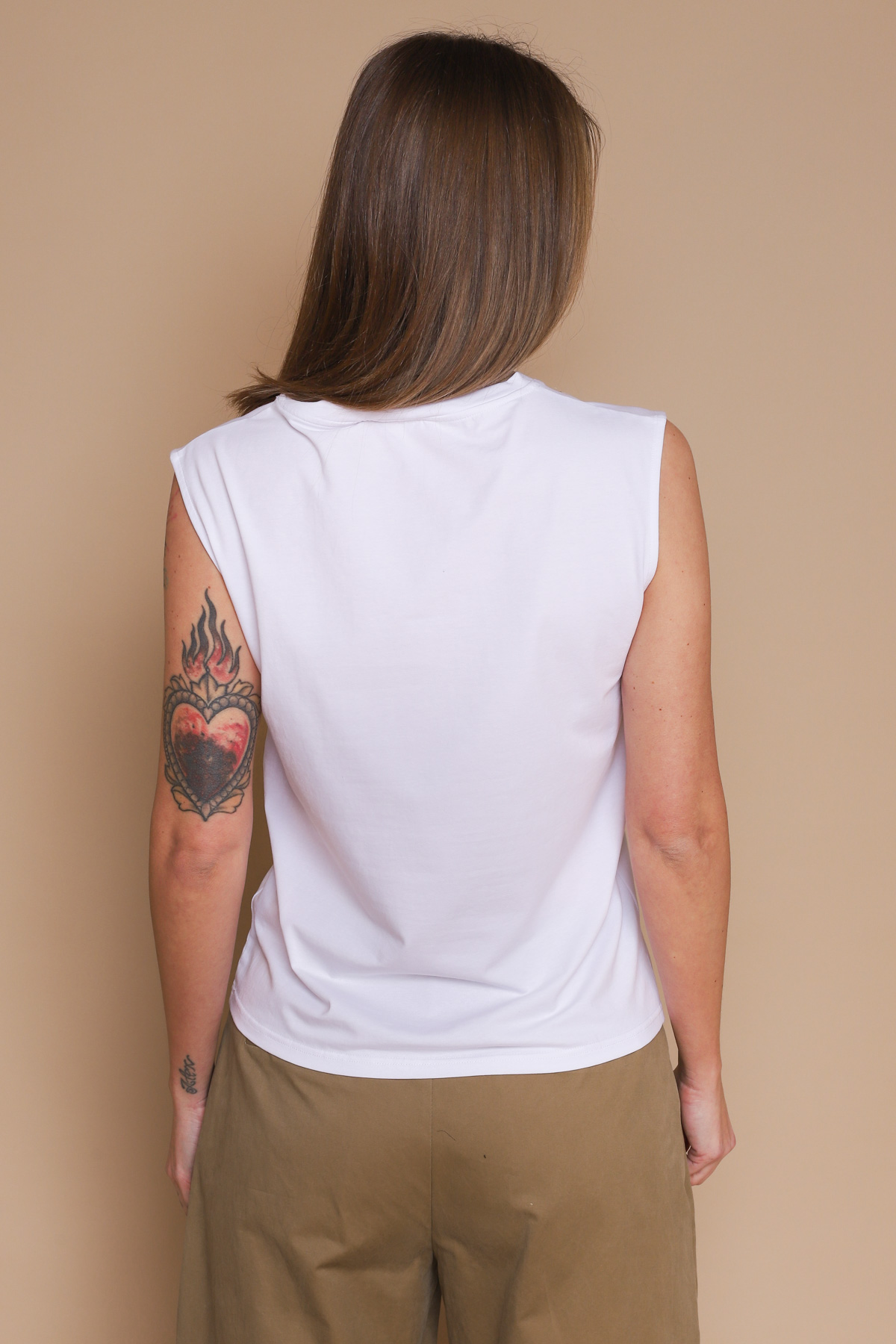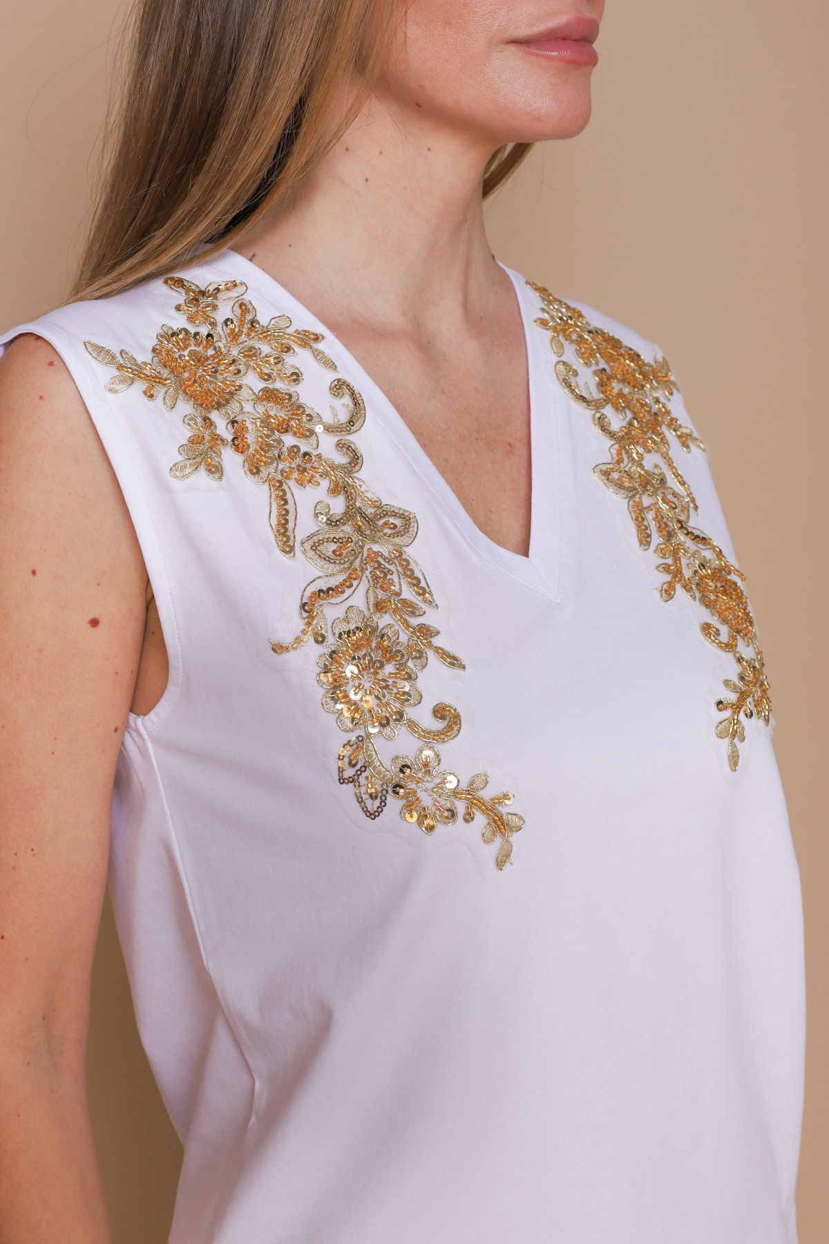 HOME > CLOTHING > T-SHIRTS > CANOTTA A V CON RICAMI E PERLINE
