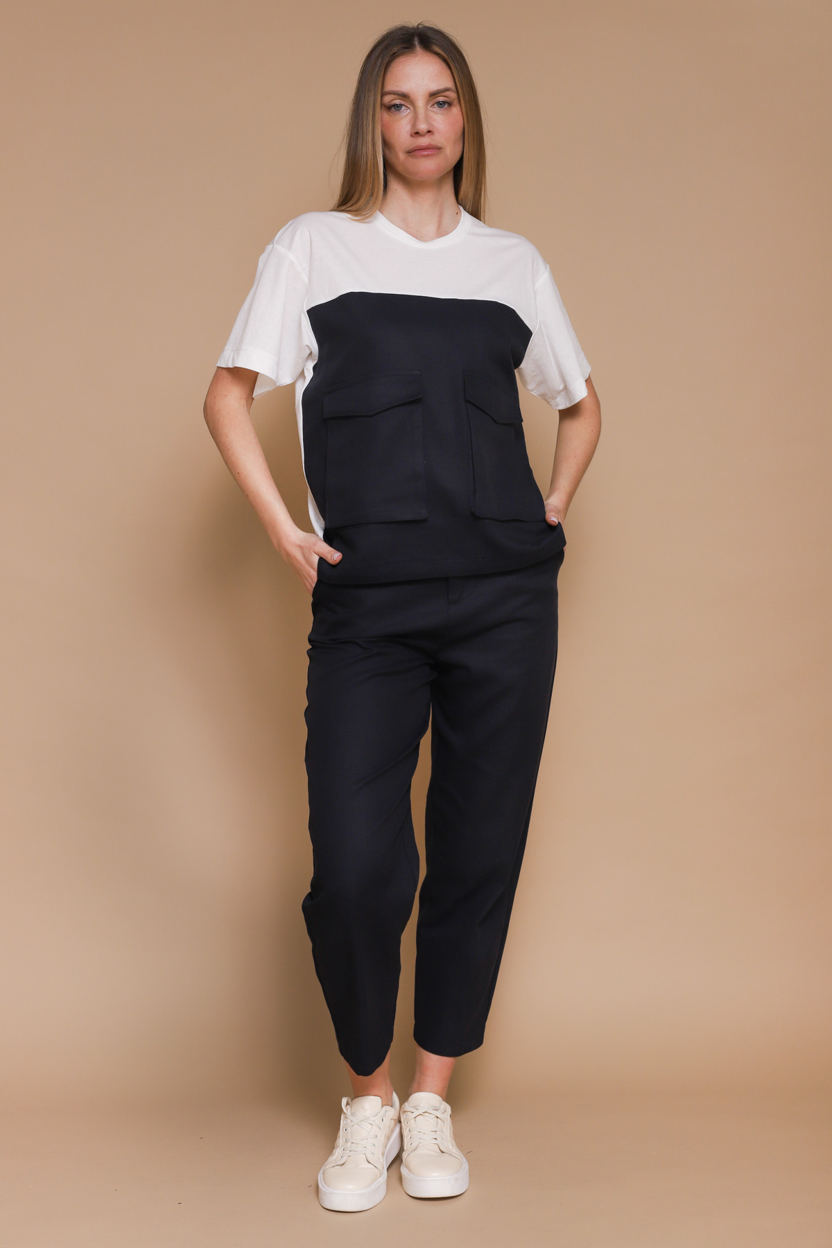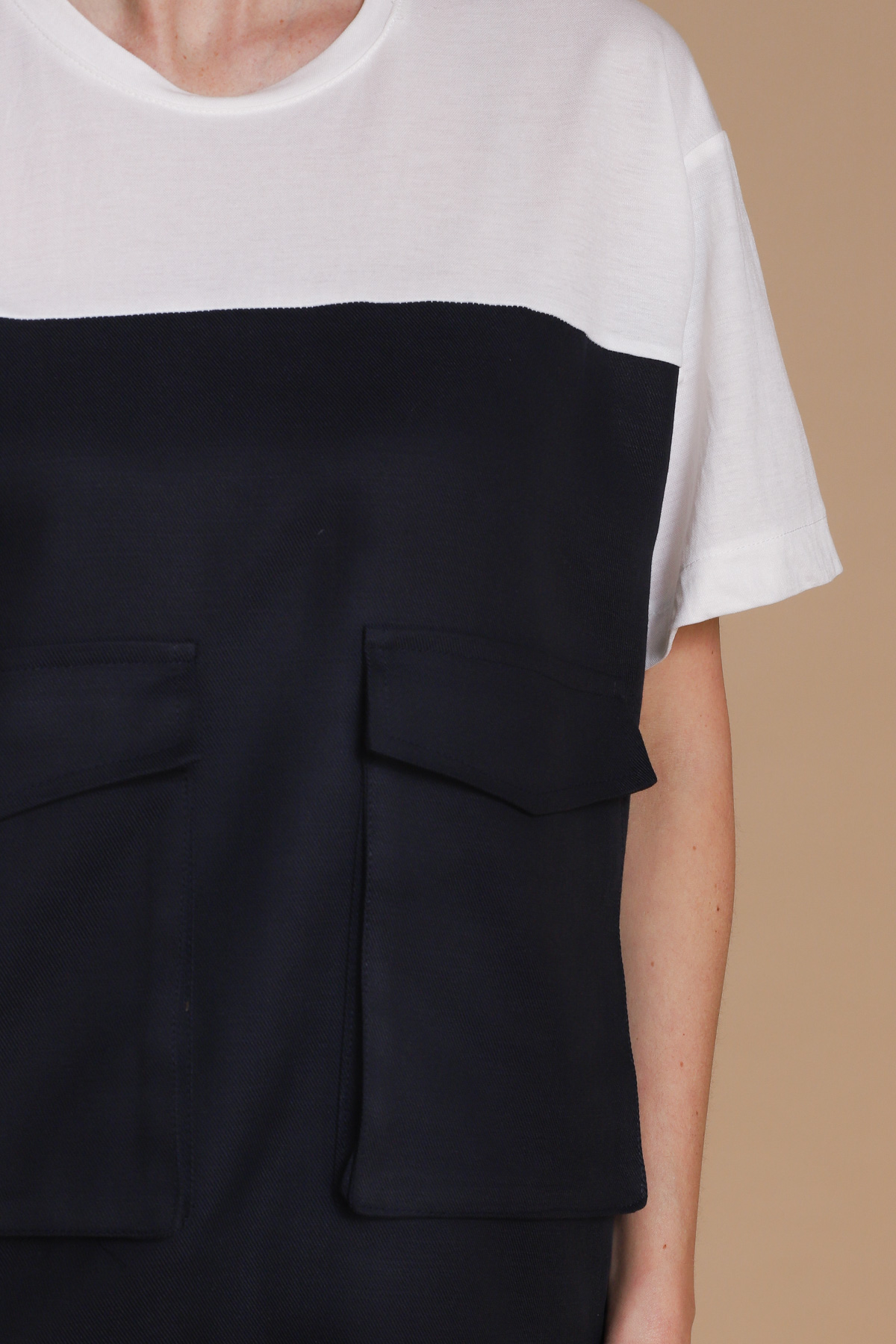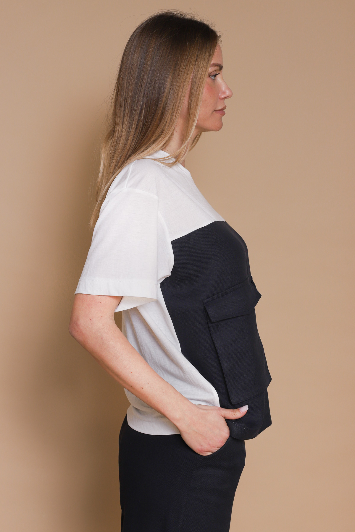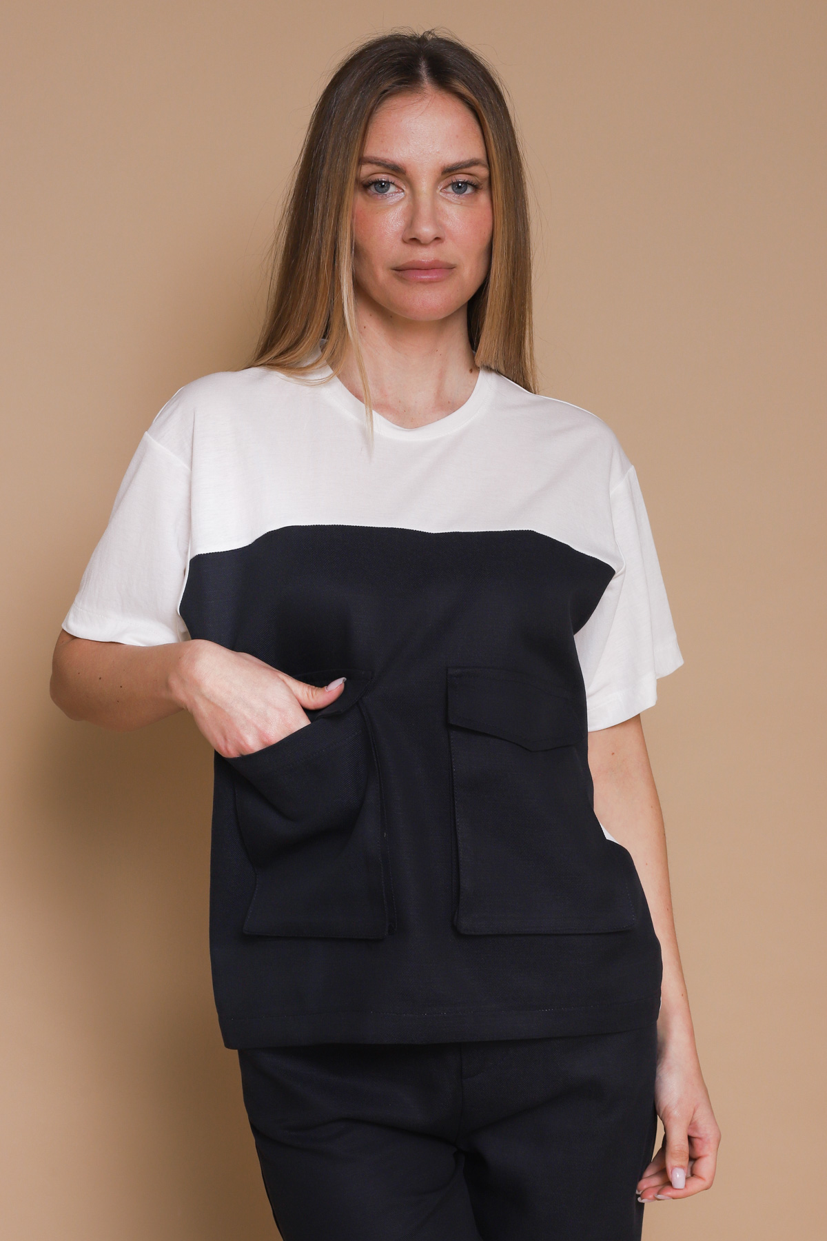 BLUSA BICOLORE IN VISCOSA/COTONE