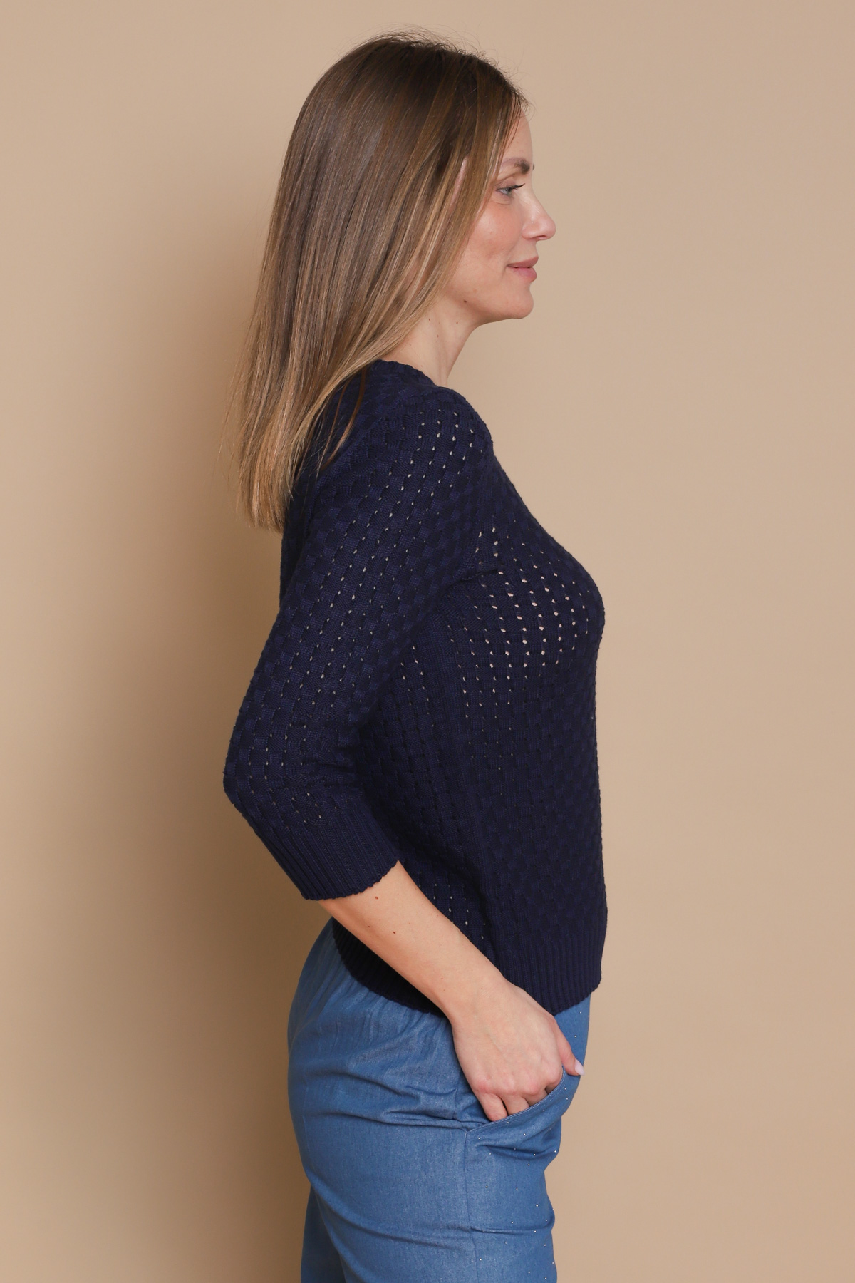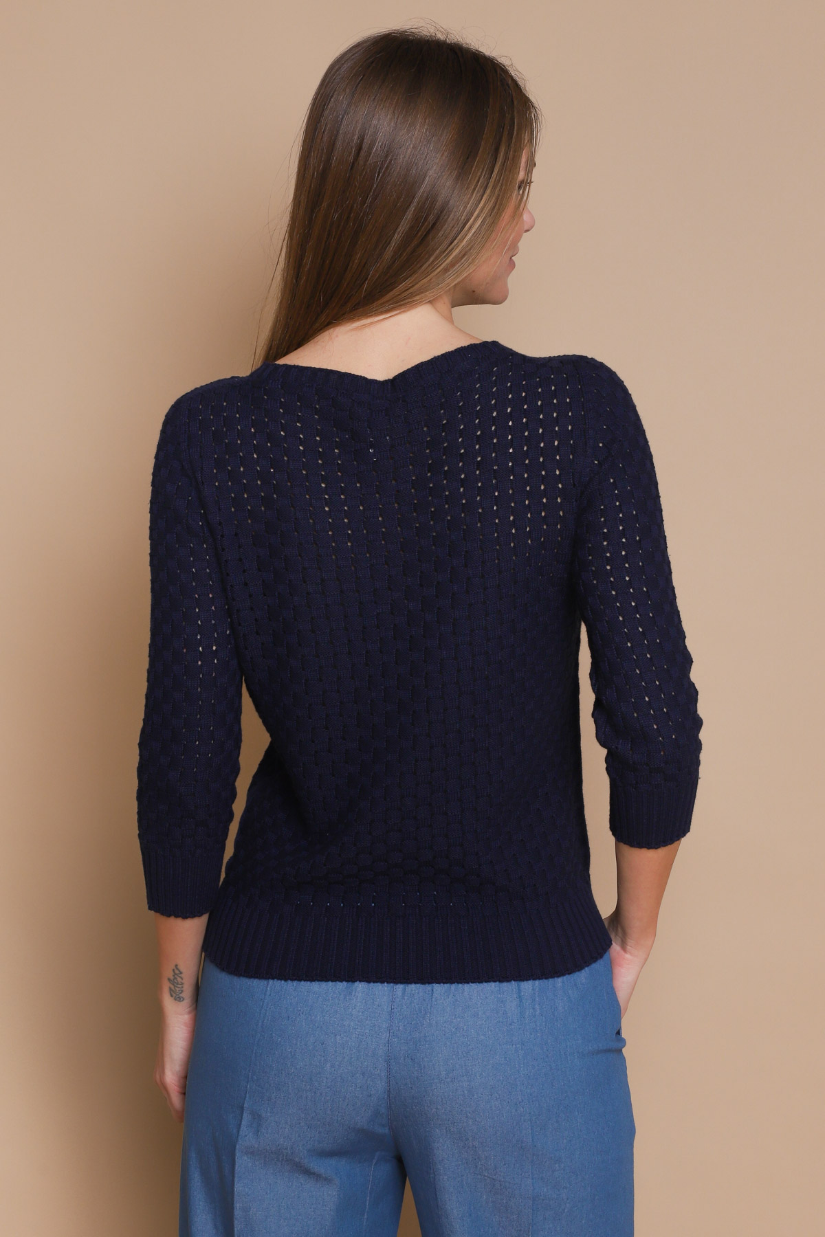 MAGLIA IN COTONE CON LAVORAZIONE PUNTO CANESTRO