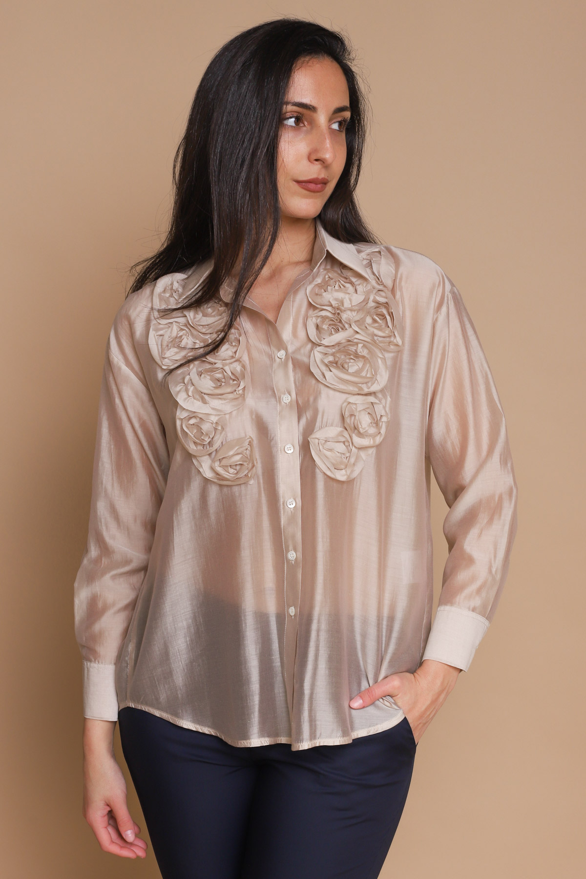 CAMICIA IN LYOCELL CON DETTAGLIO ROSE