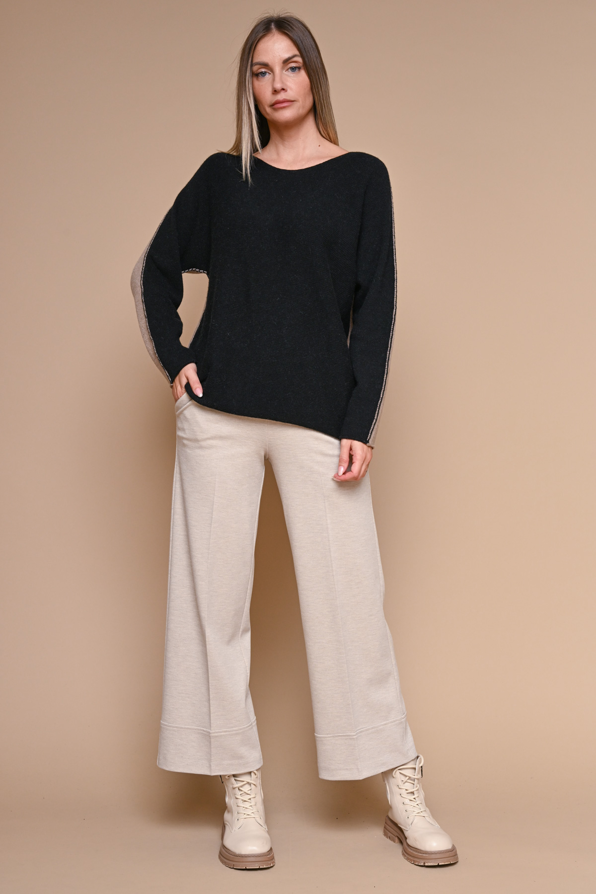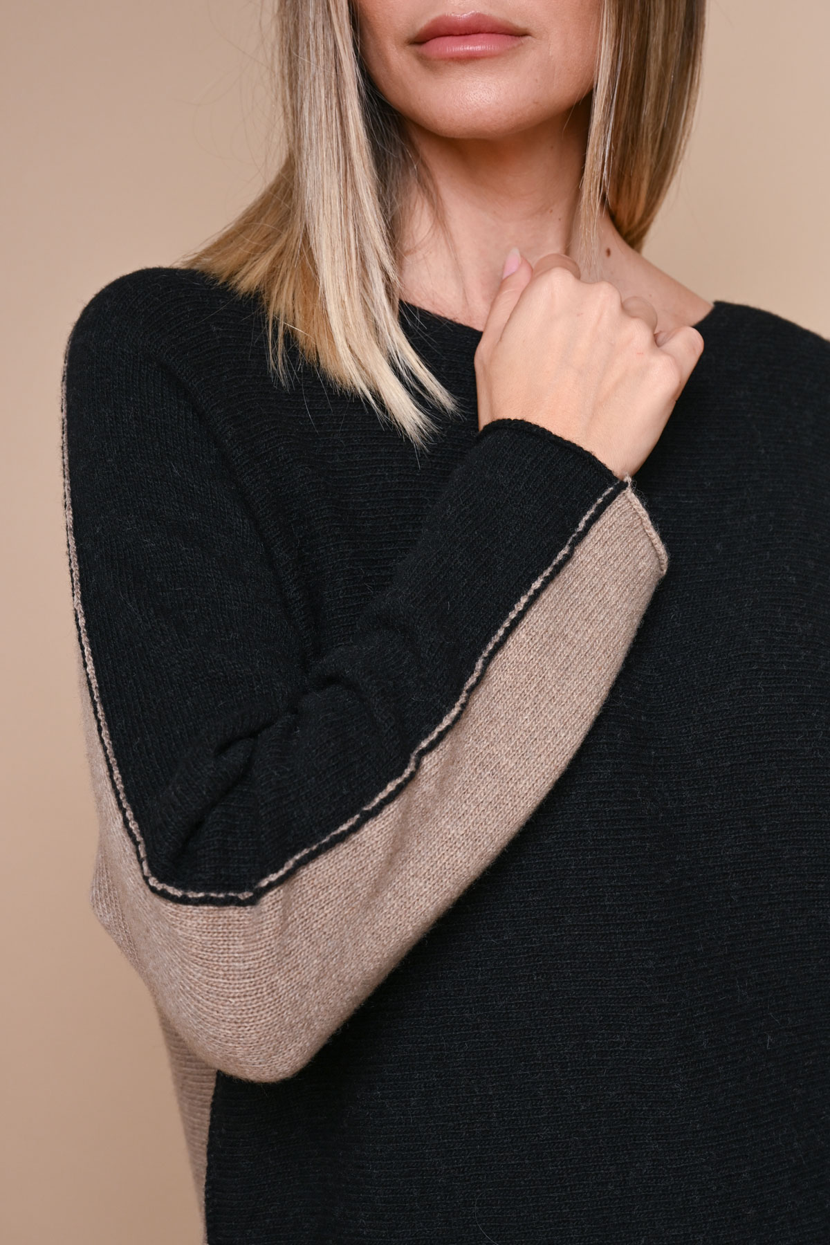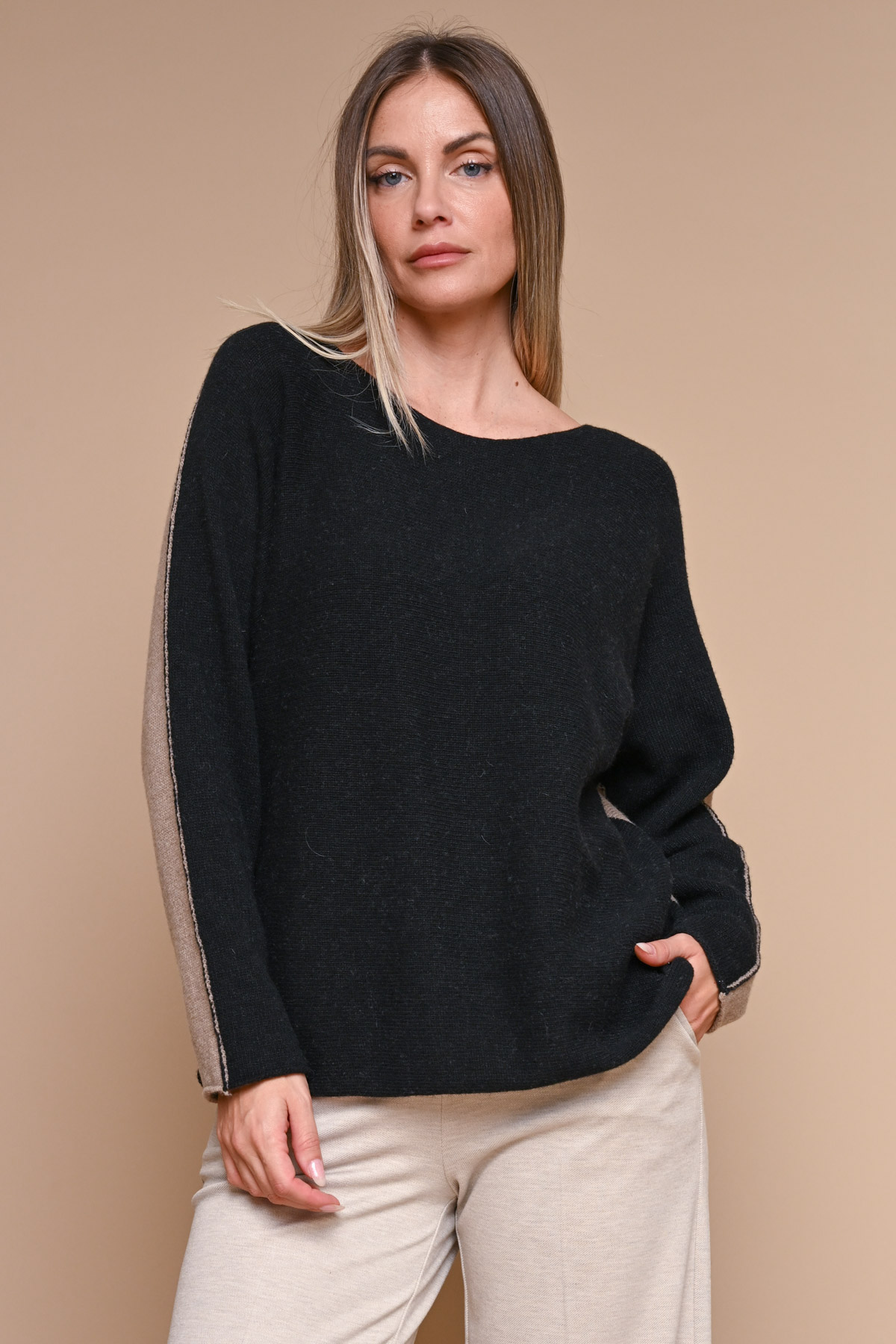 MAGLIA BICOLORE IN LANA, VISCOSA E CASHMERE