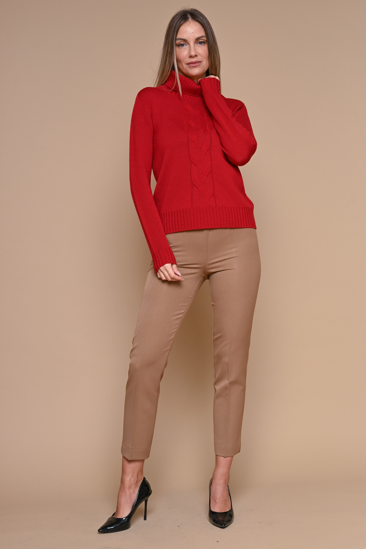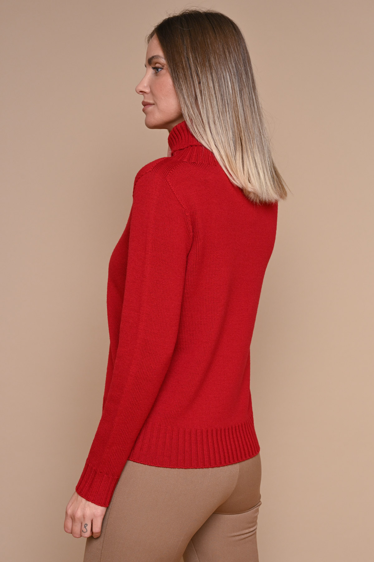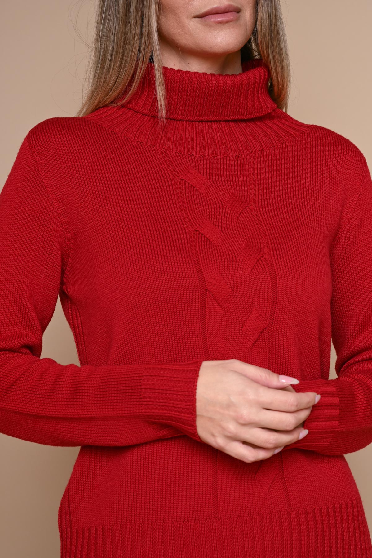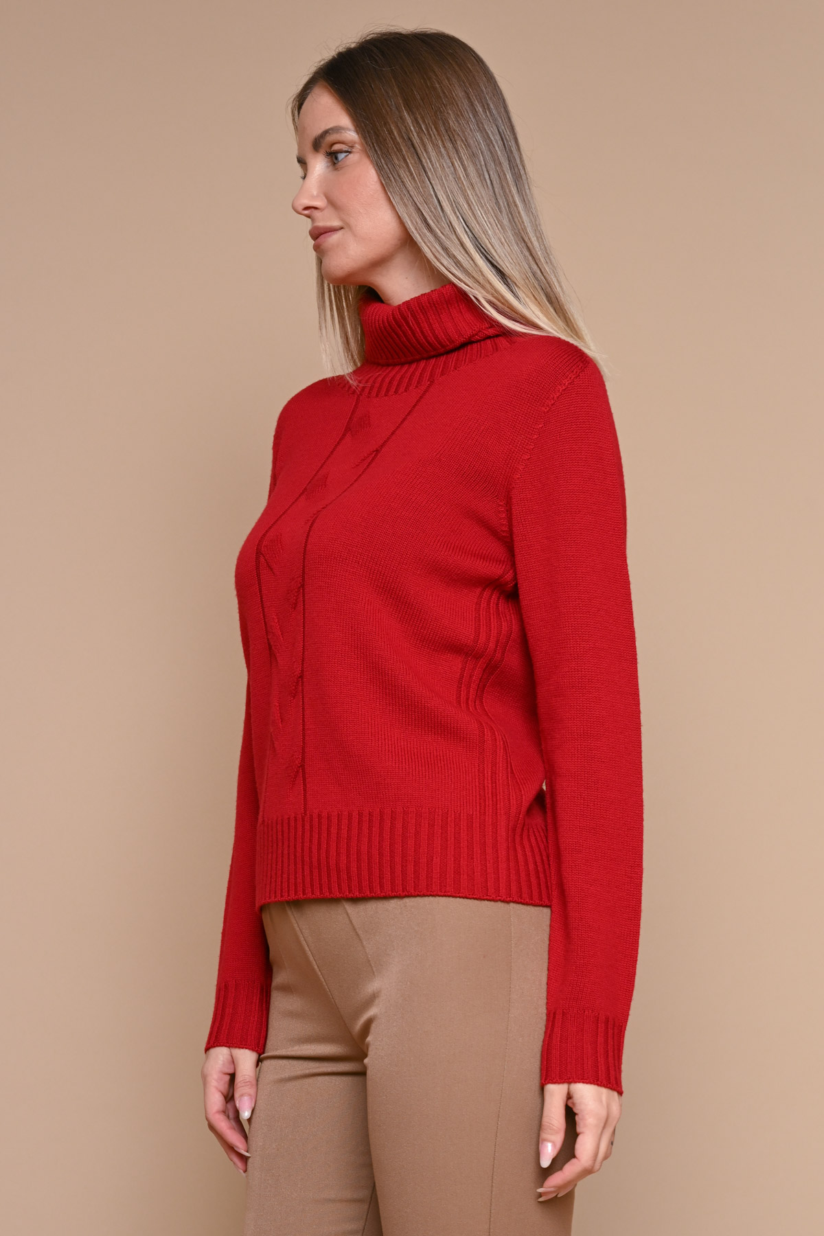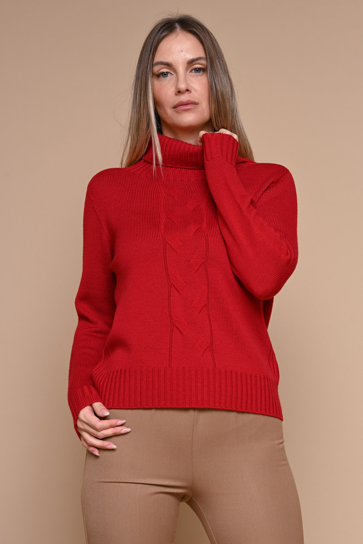 MAGLIA COLLO ALTO 100% LANA VERGINE MOTIVO TRECCIA