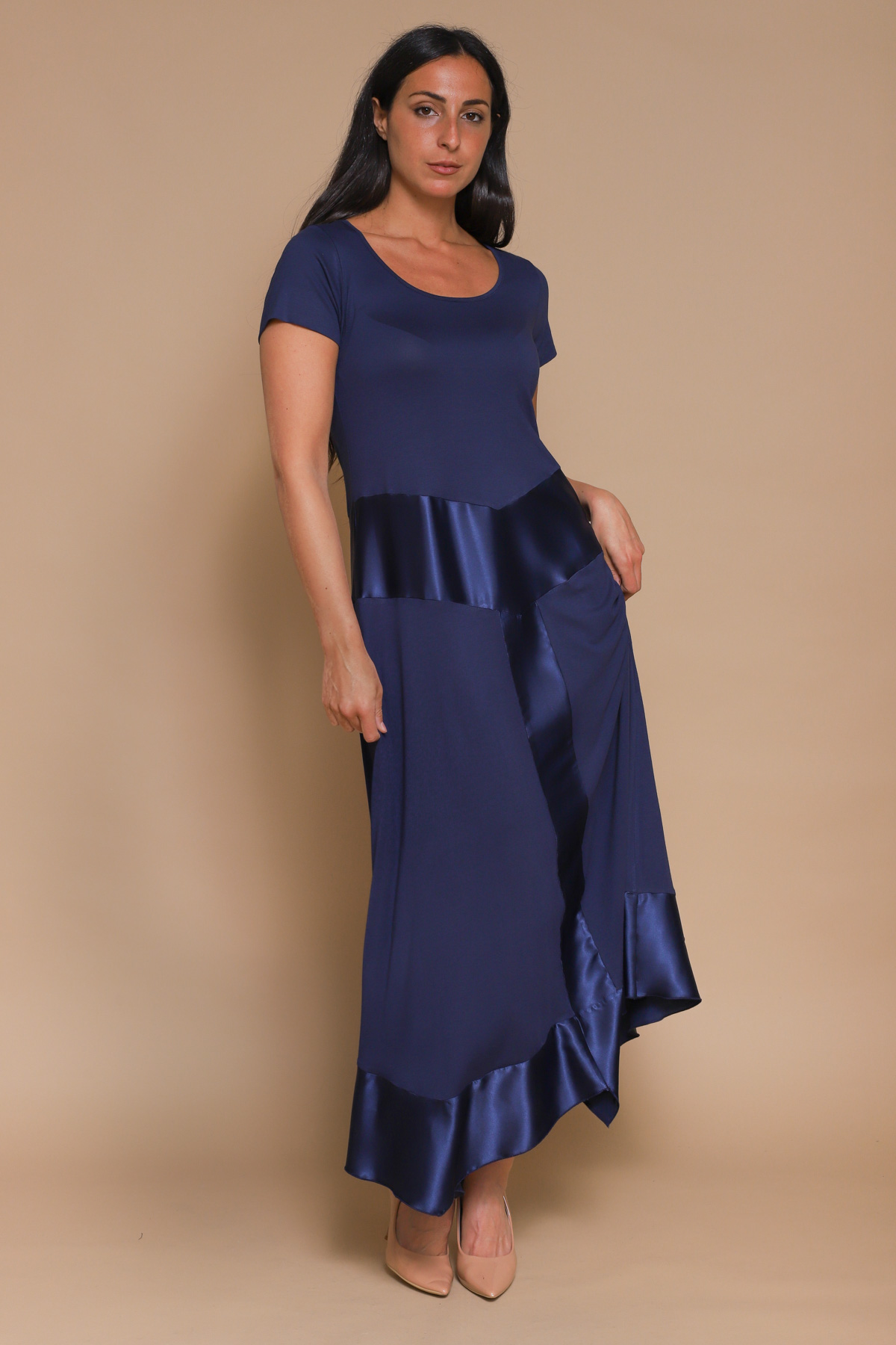 ABITO CON DETTAGLI IN RASO DI VISCOSA