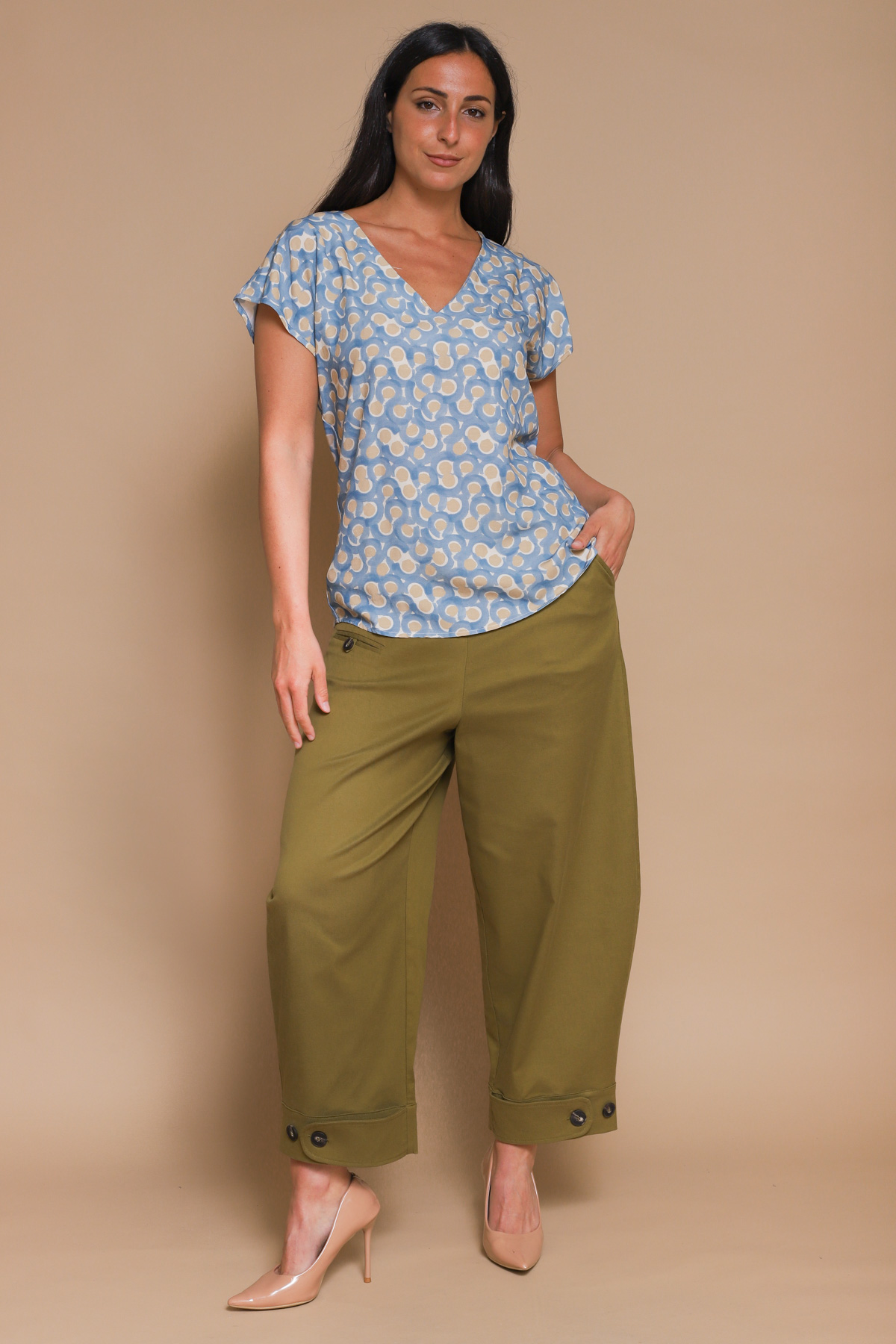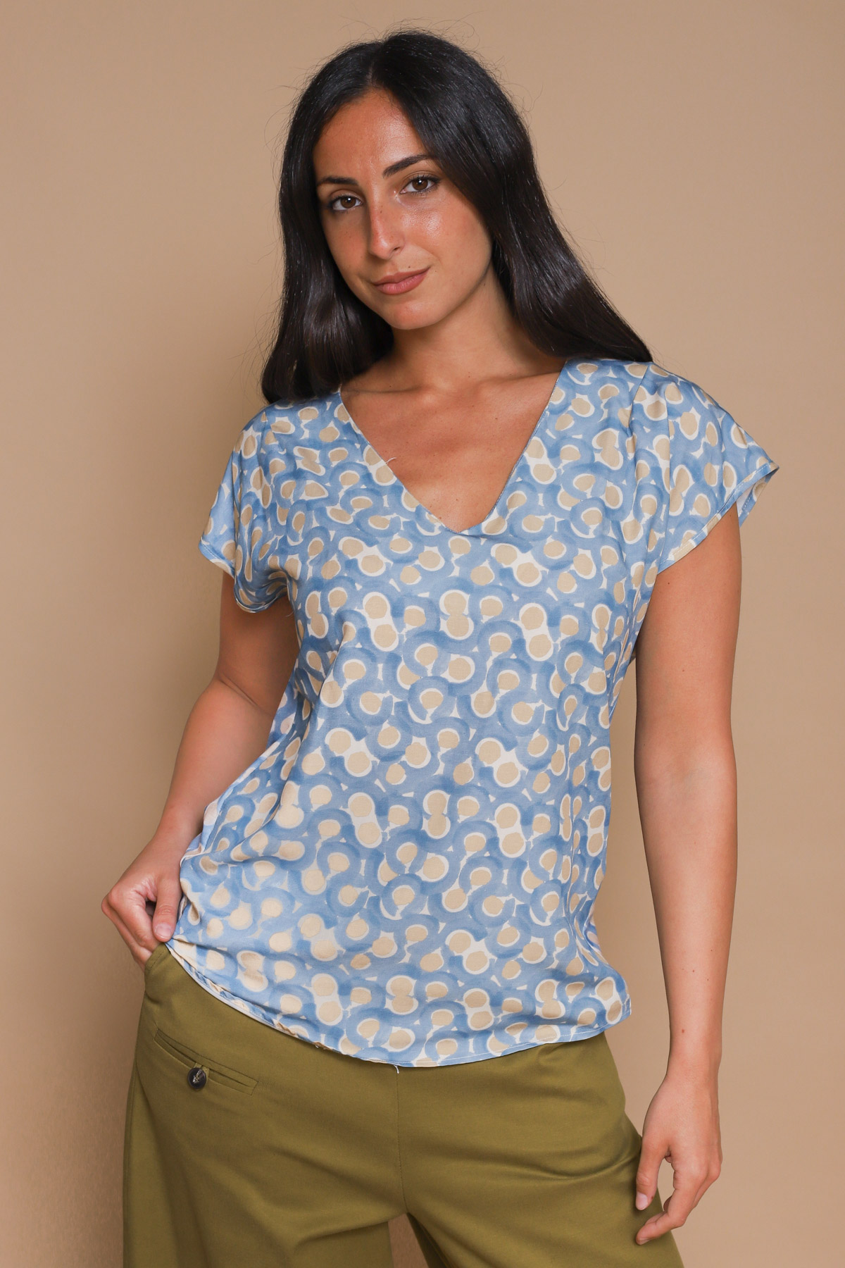 BLUSA A V IN VISCOSA E LYOCELL