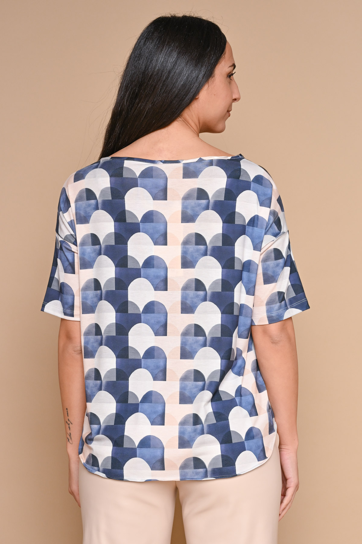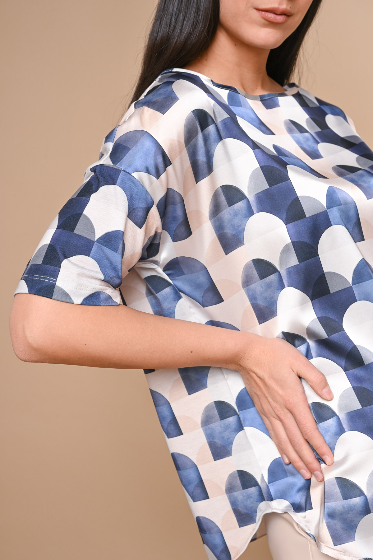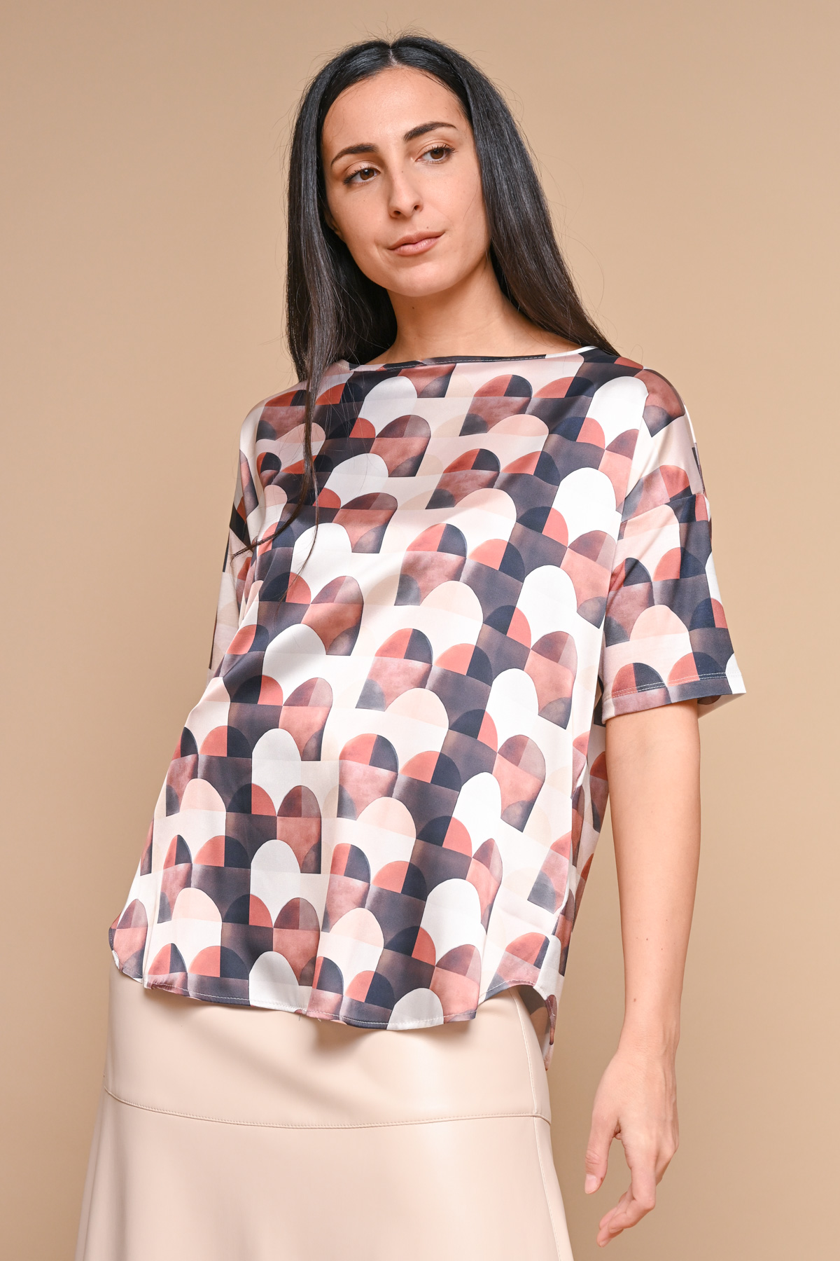 BLUSA IN SETA A FANTASIA GEOMETRICA