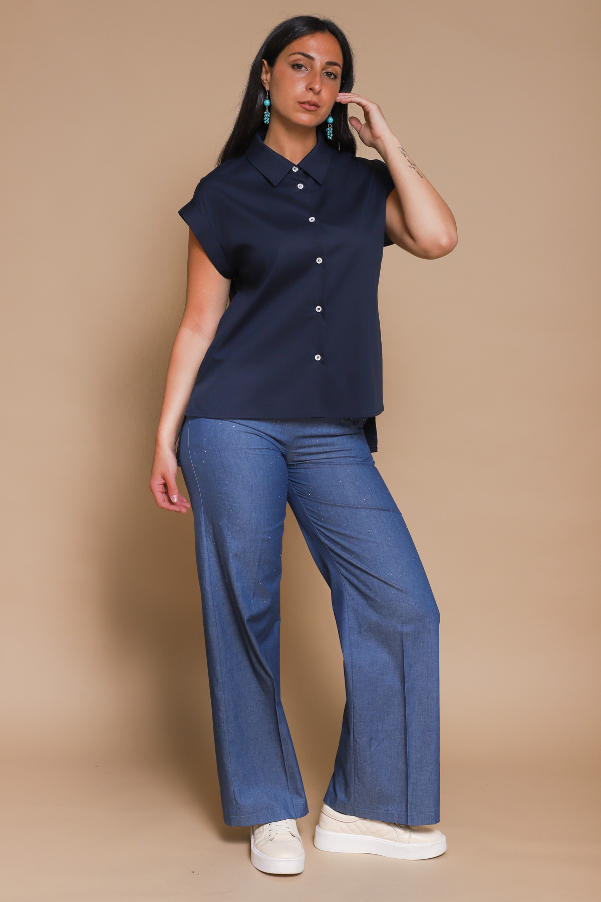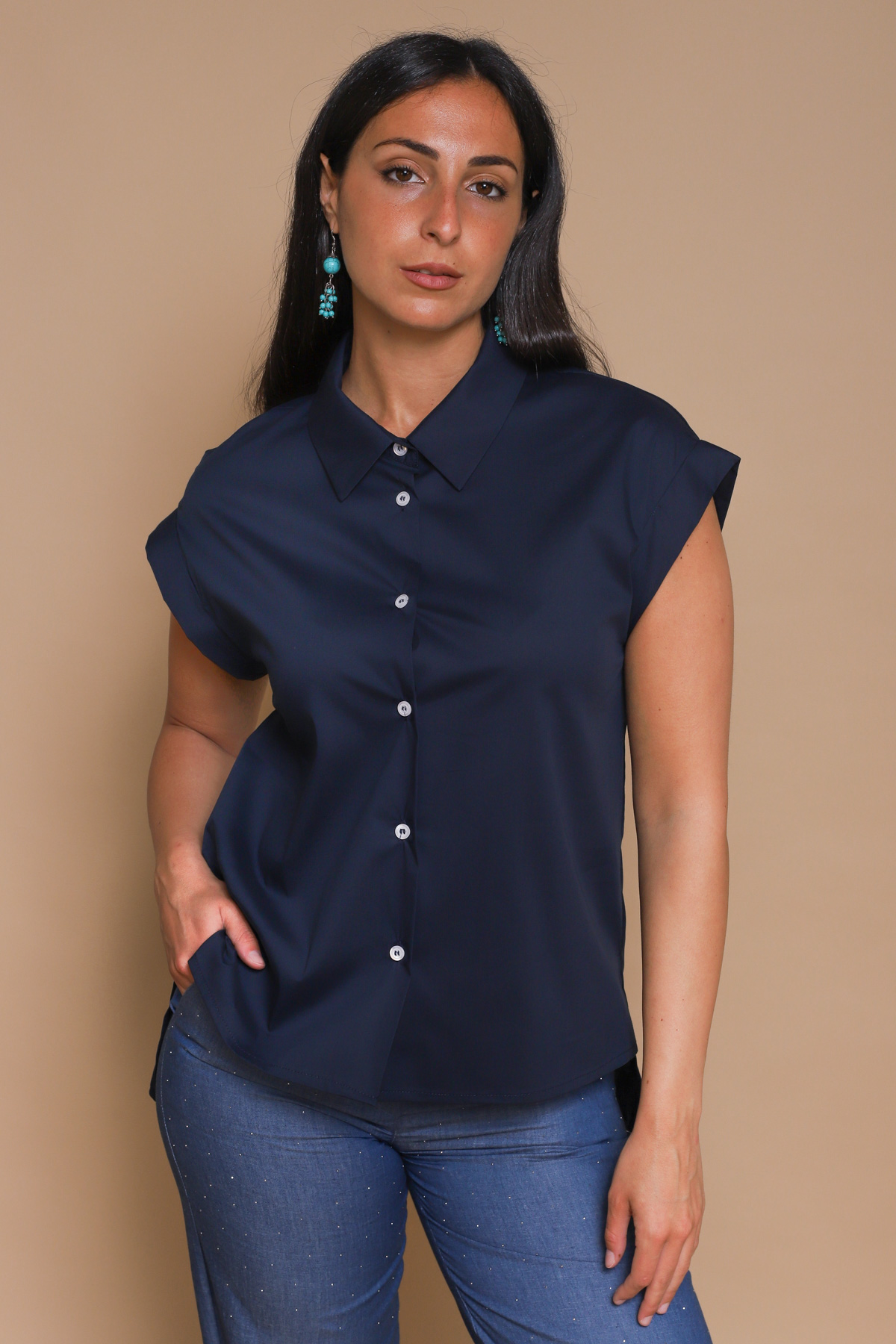 CAMICIA A MANICHE CORTE IN COTONE ELASTICIZZATO