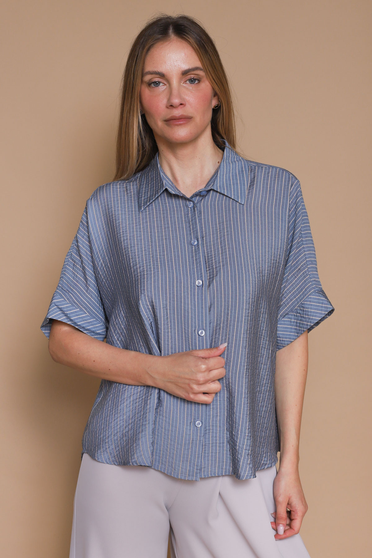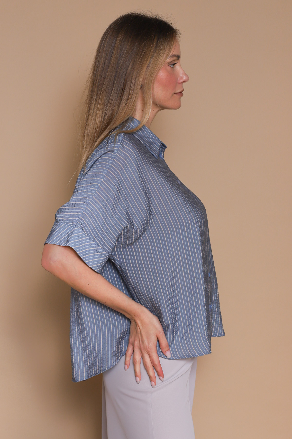 CAMICIA MANICHE CORTE A RIGHE