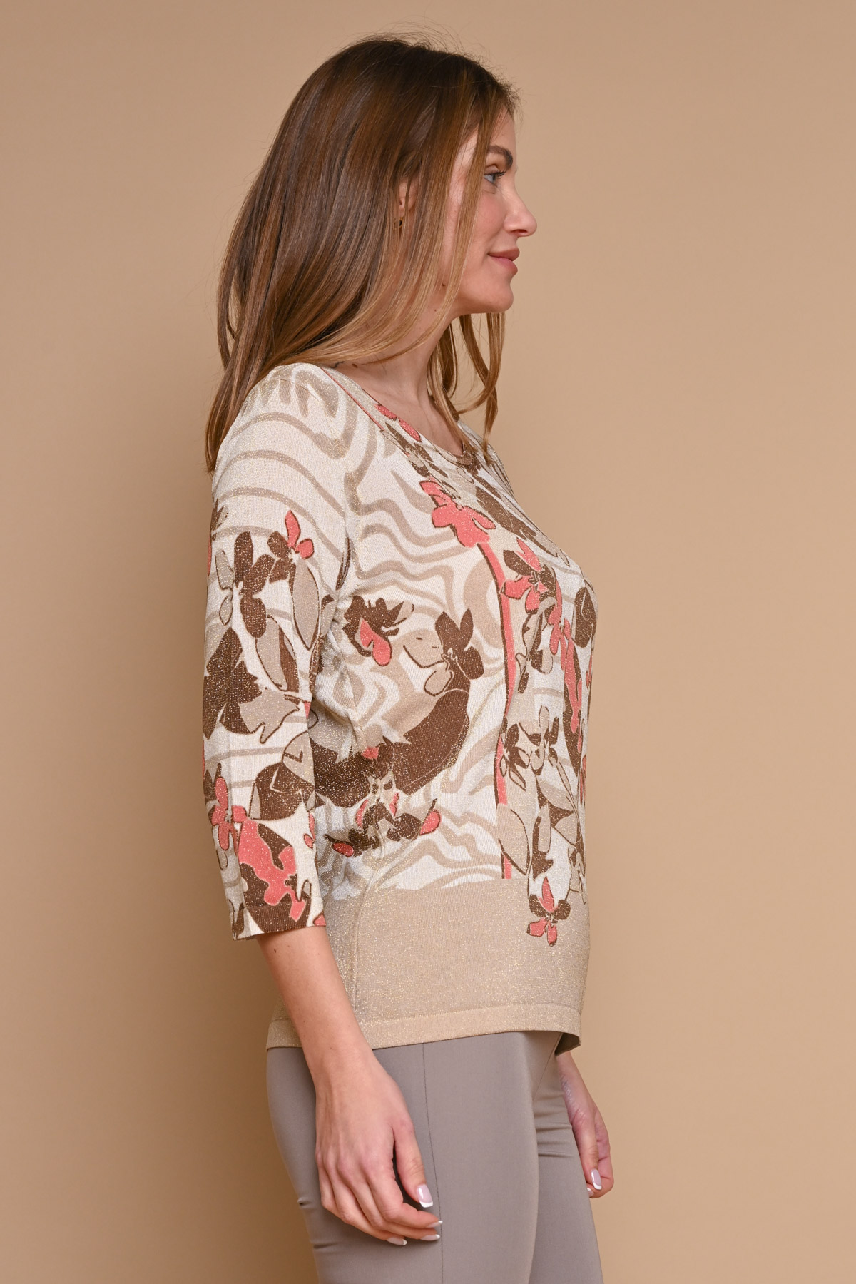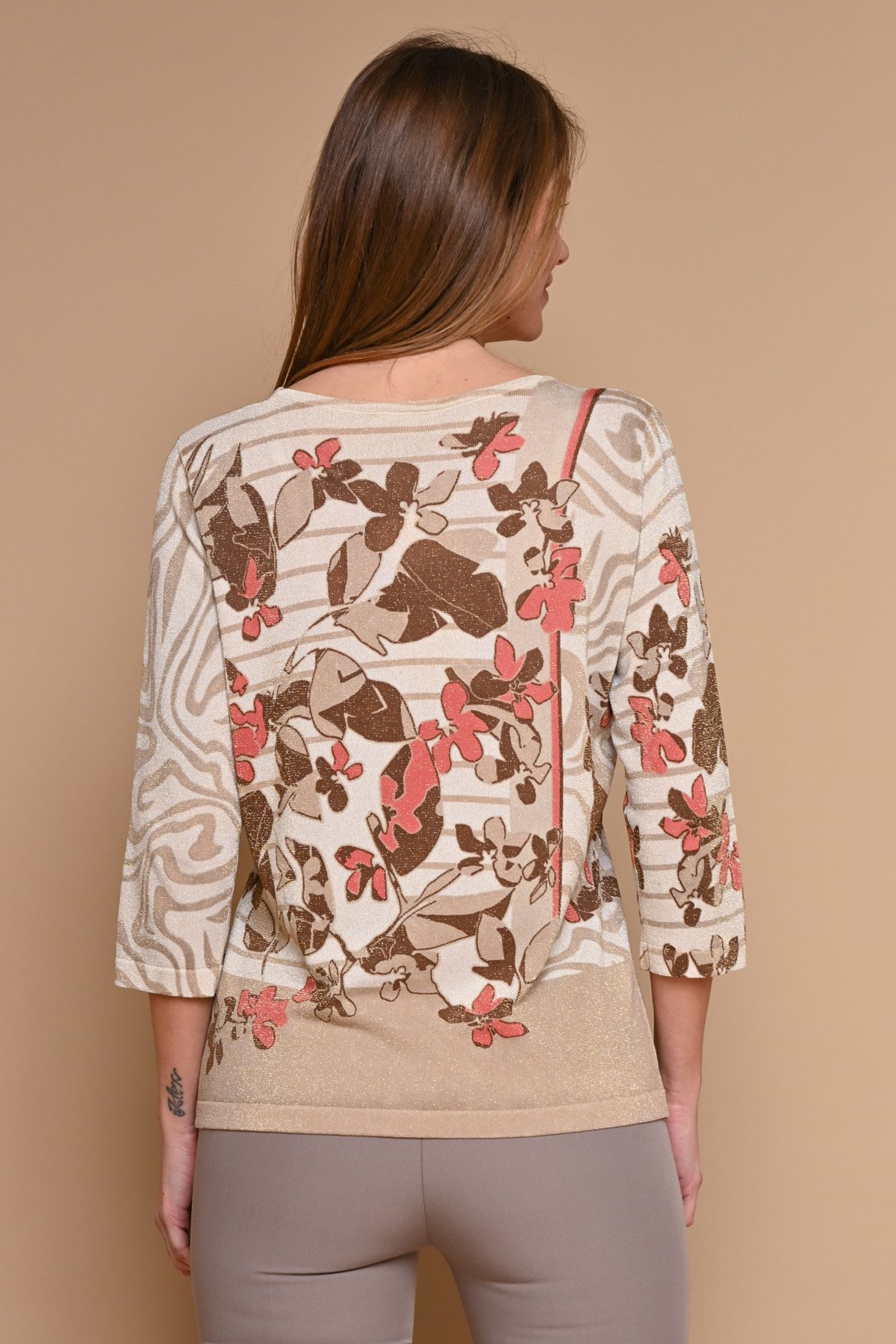 MAGLIA A STAMPA FLOREALE IN VISCOSA E LUREX