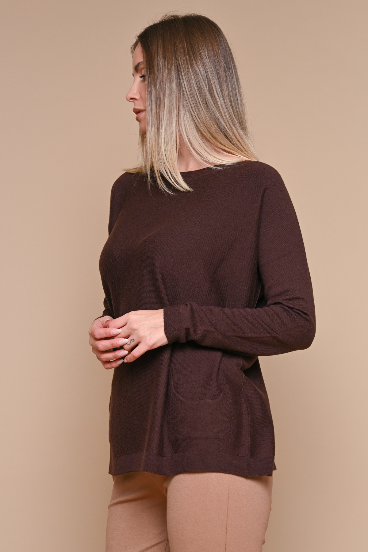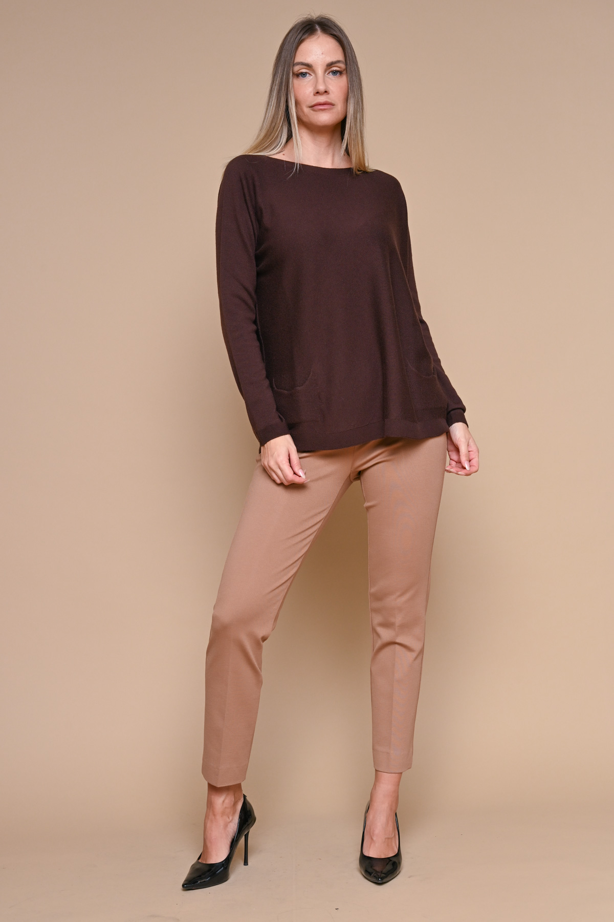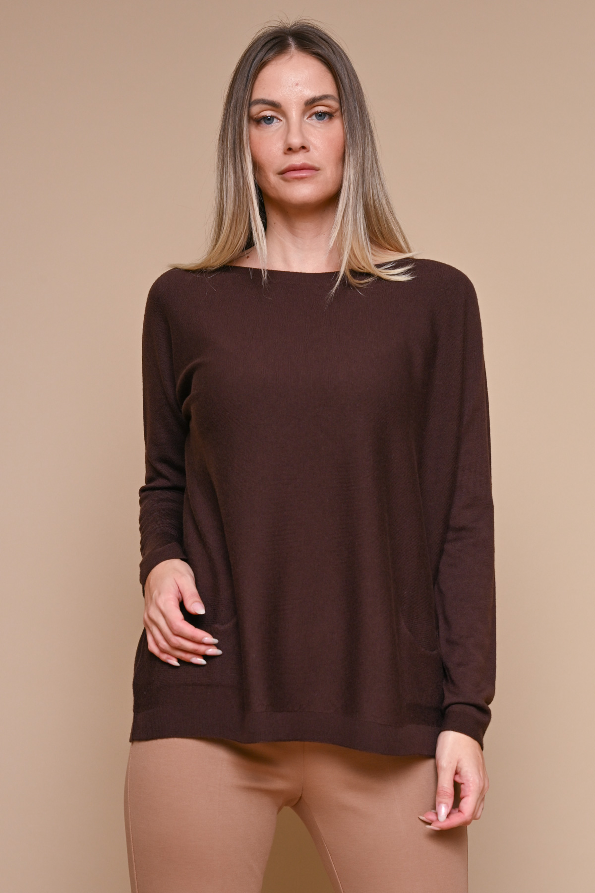MAGLIA CON SCOLLO A BARCA IN PURA LANA VERGINE