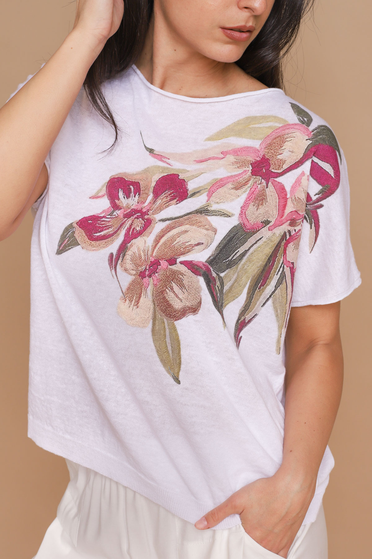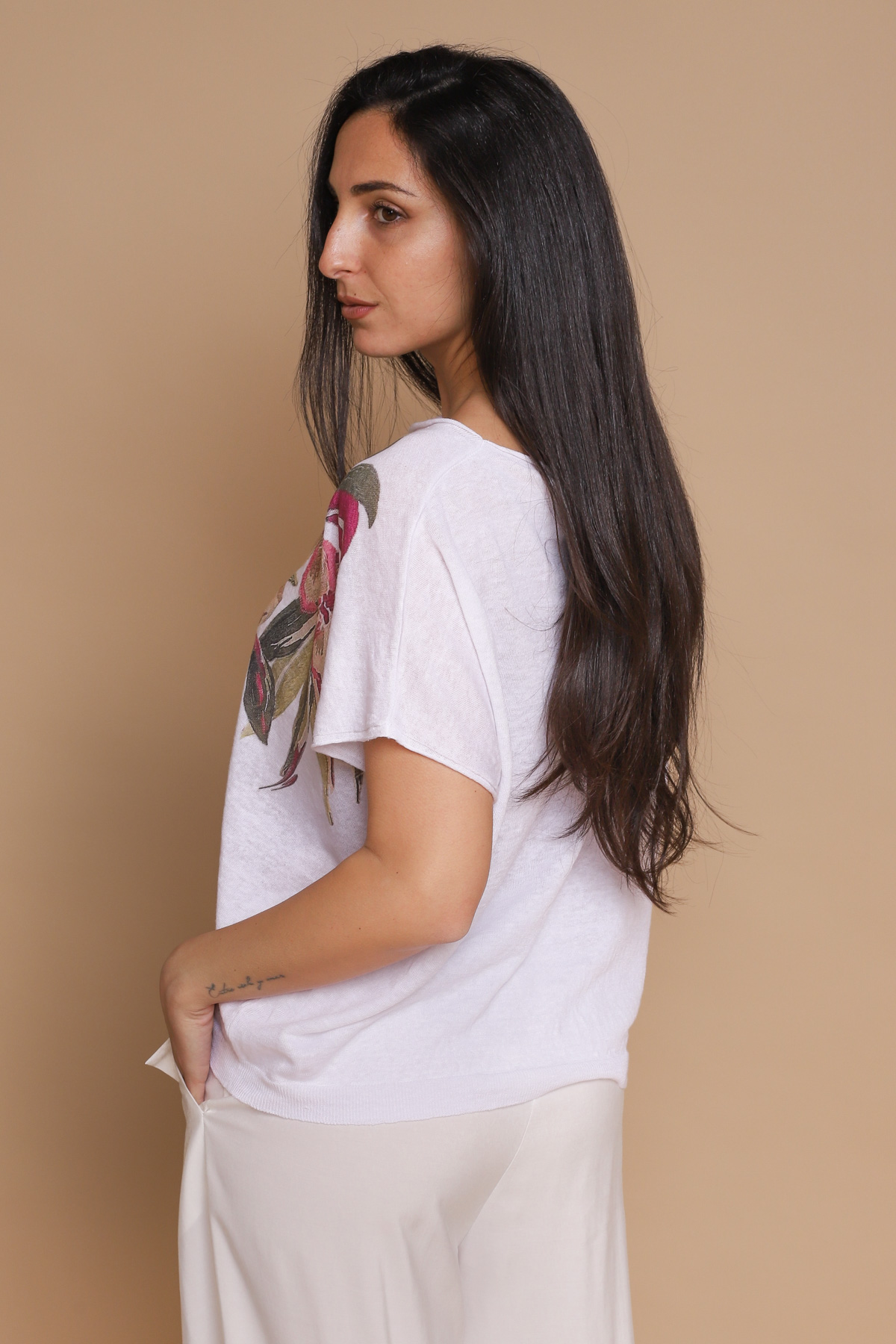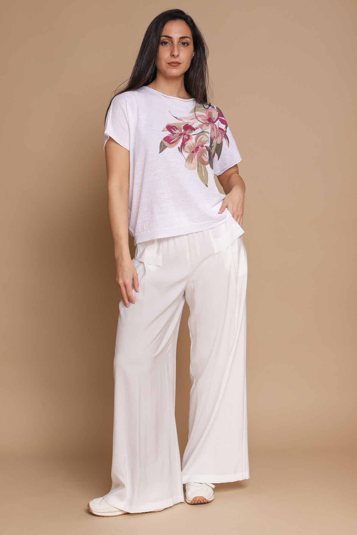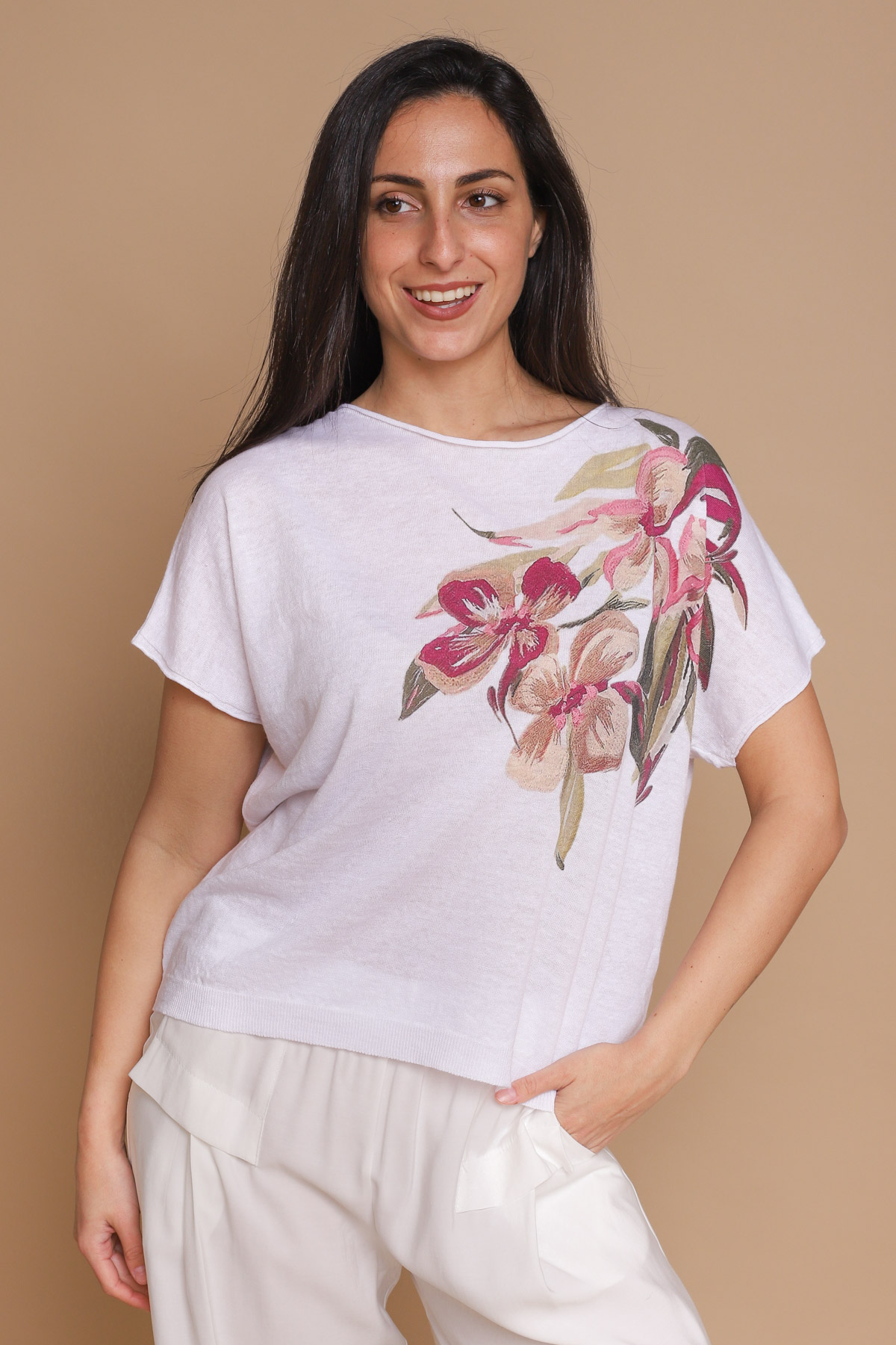 HOME > Abbigliamento > MAGLIE > MAGLIA IN MISTO LINO CON FIORE