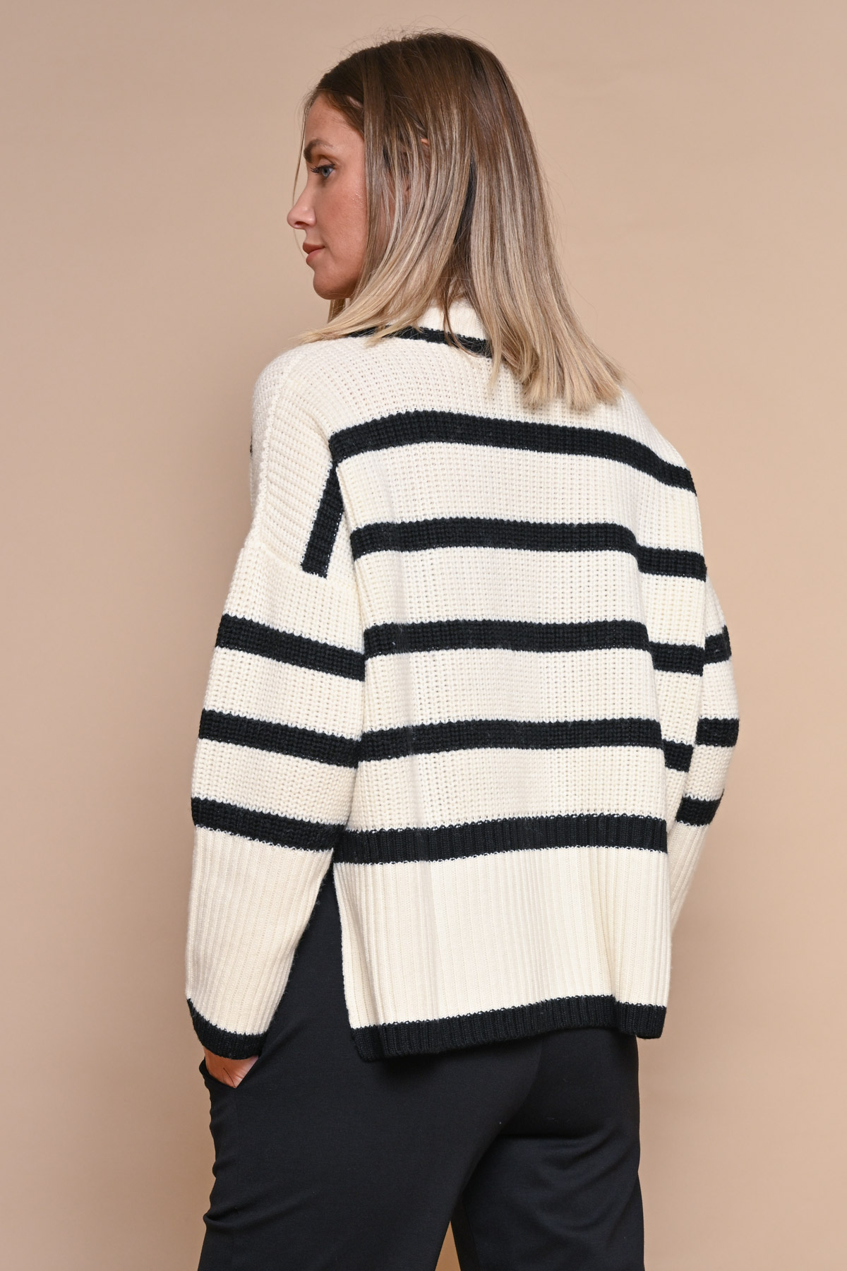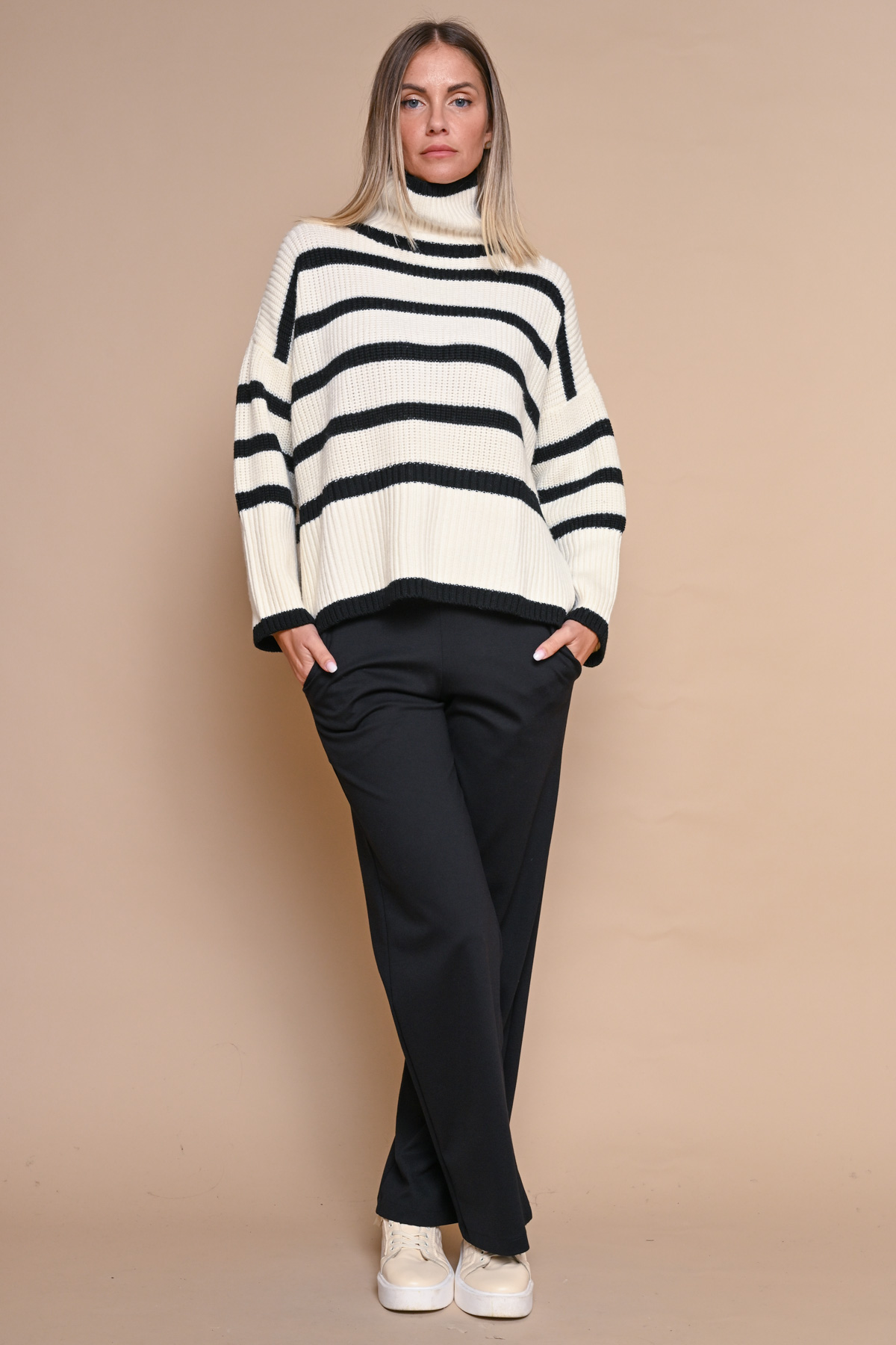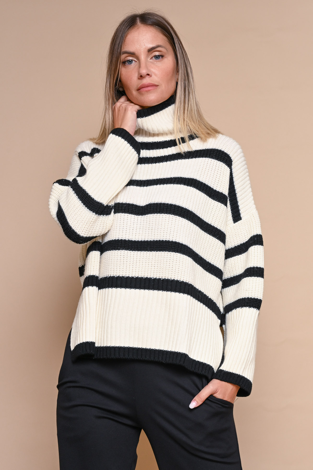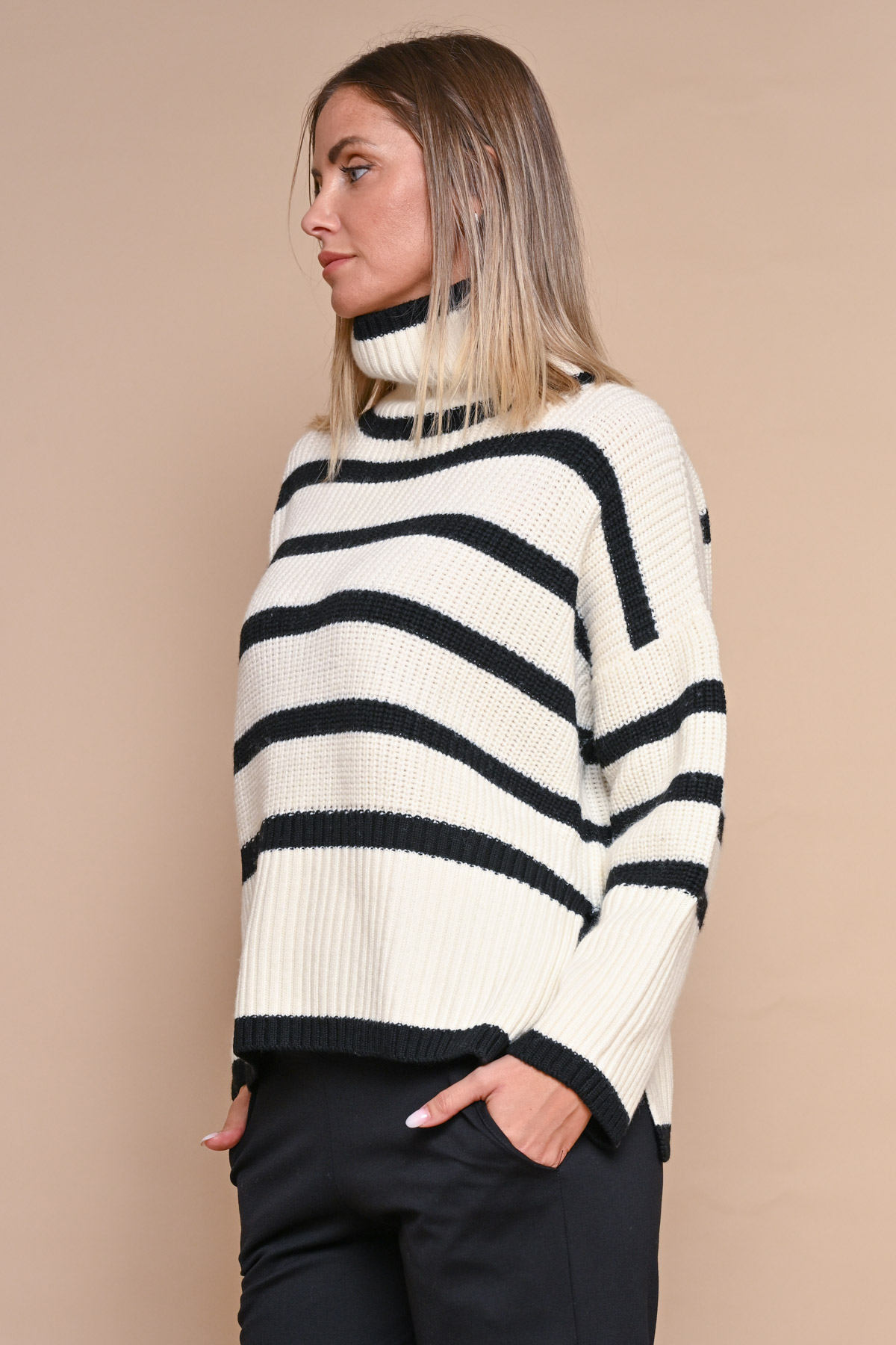 HOME > Abbigliamento > MAGLIE > MAGLIONE A COLLO ALTO A RIGHE IN PURA LANA VERGINE
