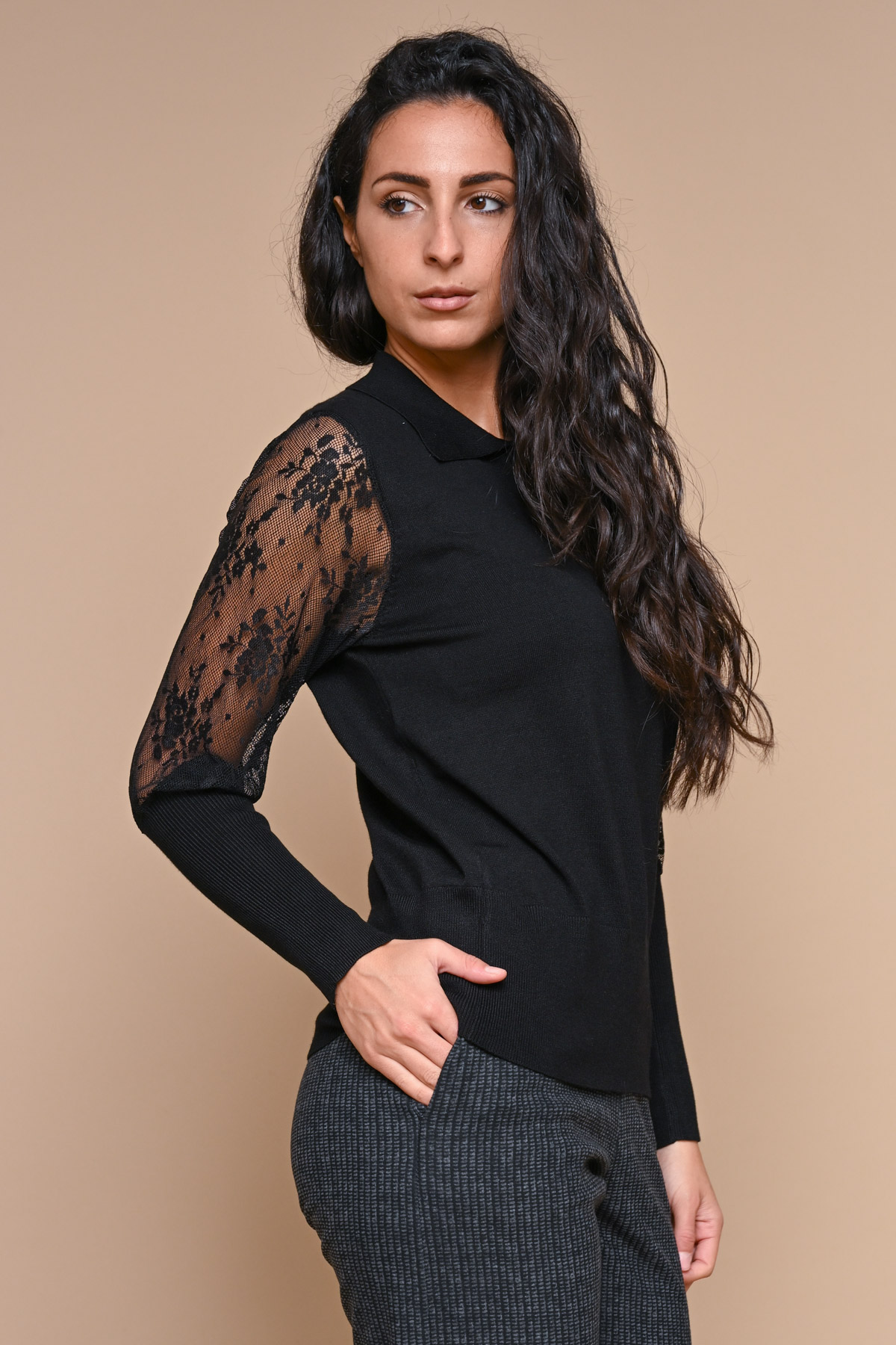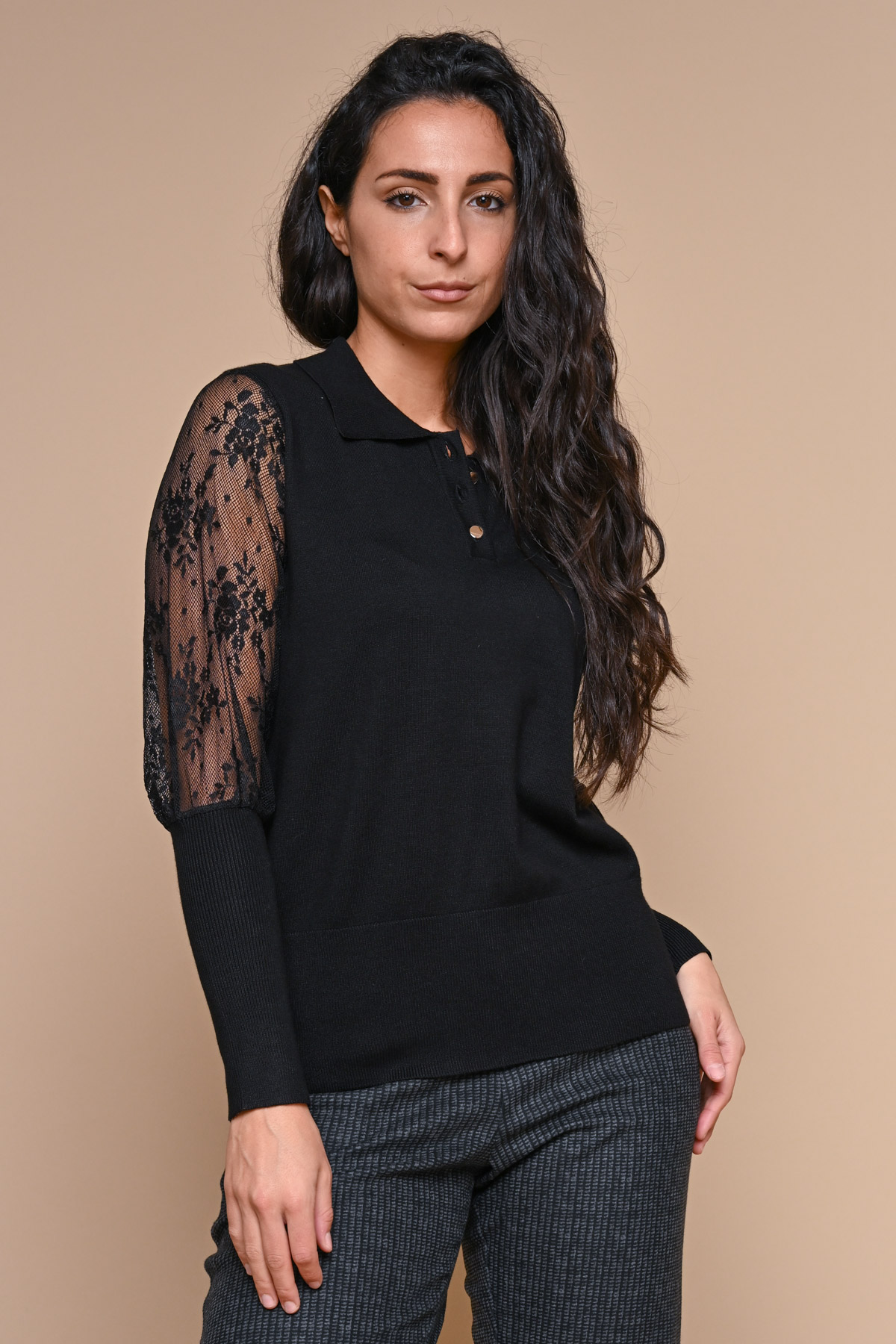 HOME > Abbigliamento > MAGLIE > POLO IN VISCOSA CON PIZZO