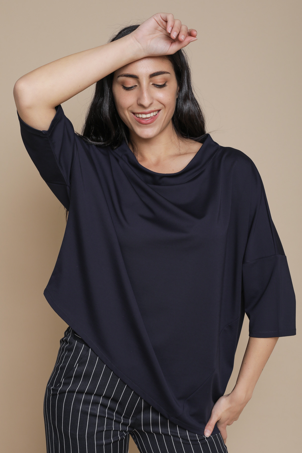 BLUSA CON SCOLLO A CRATERE IN VISCOSA