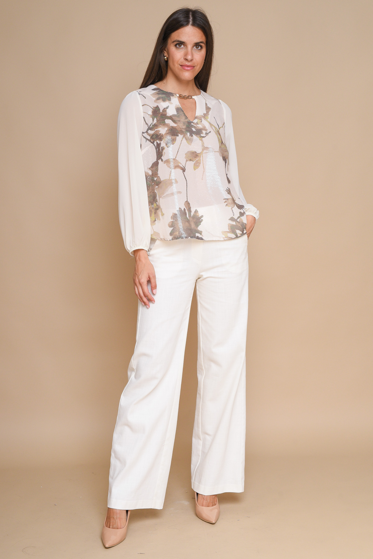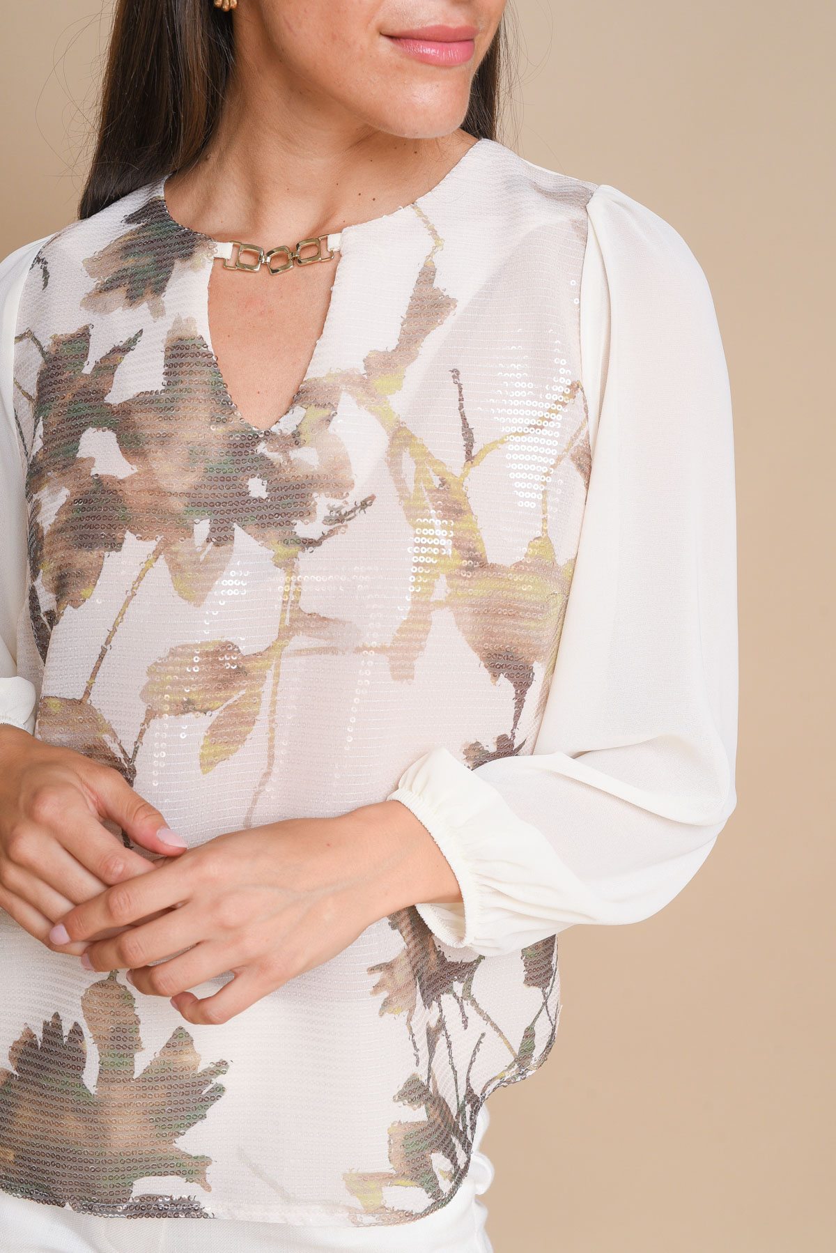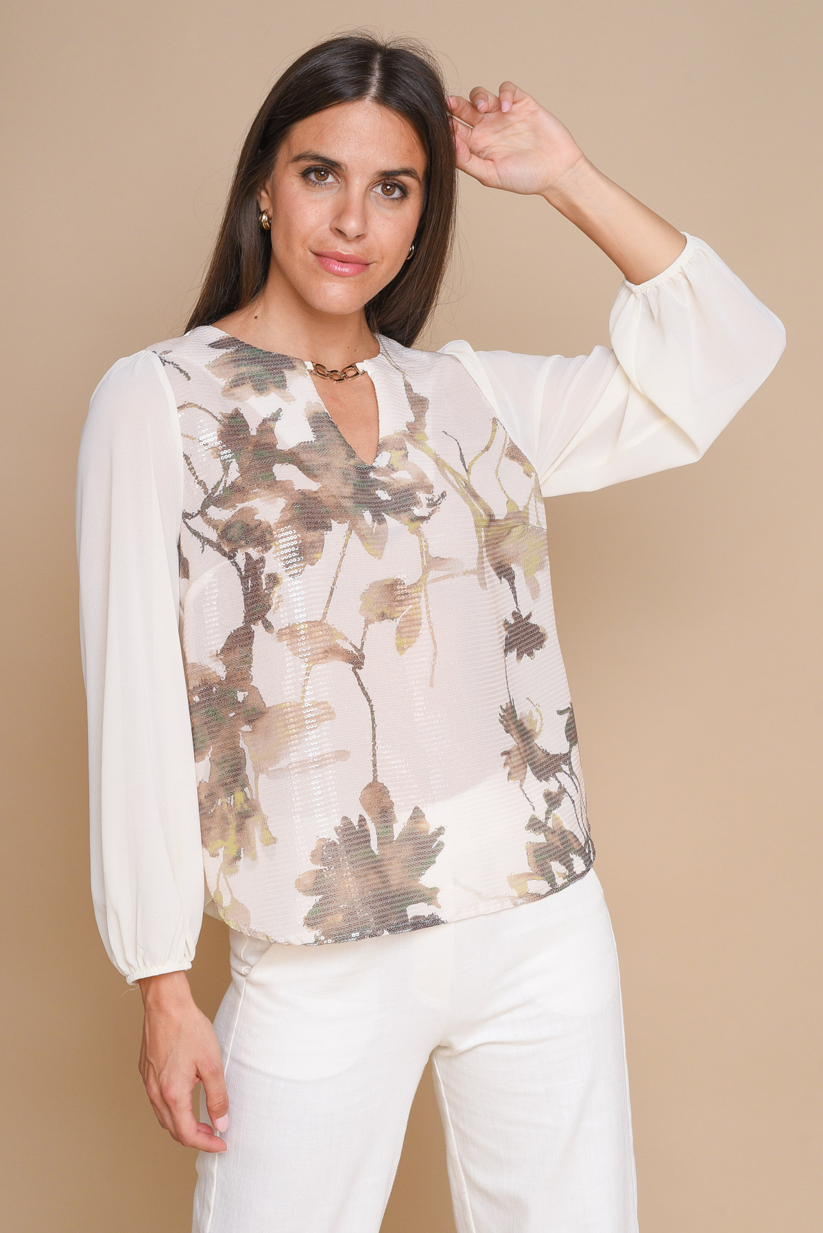 BLUSA FLOREALE CON DETTAGLIO SCOLLO