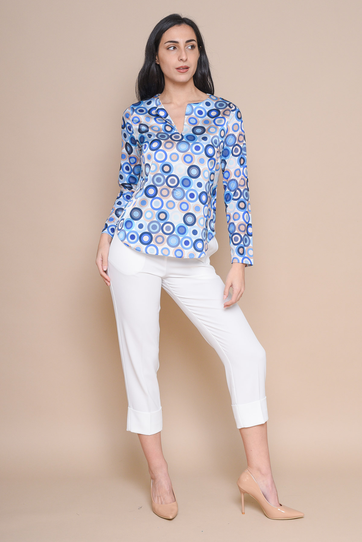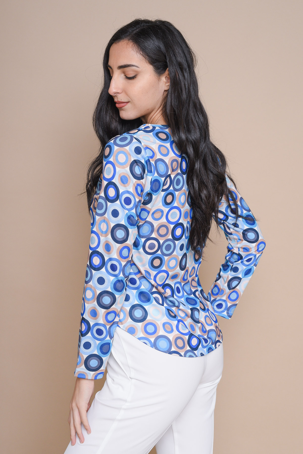 BLUSA IN SETA E VISCOSA CON MOTIVO GEOMETRICO