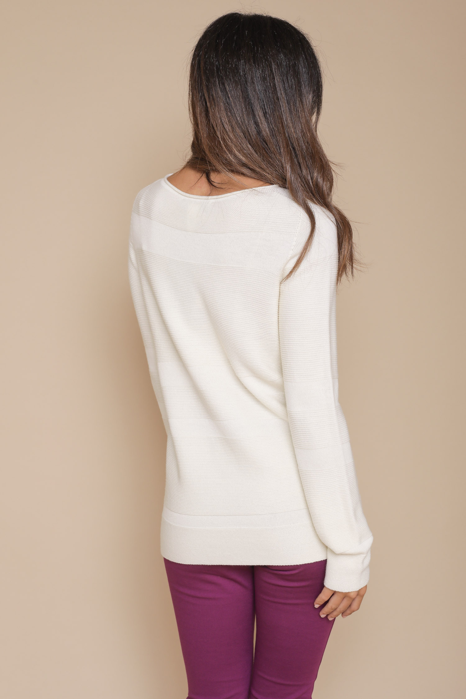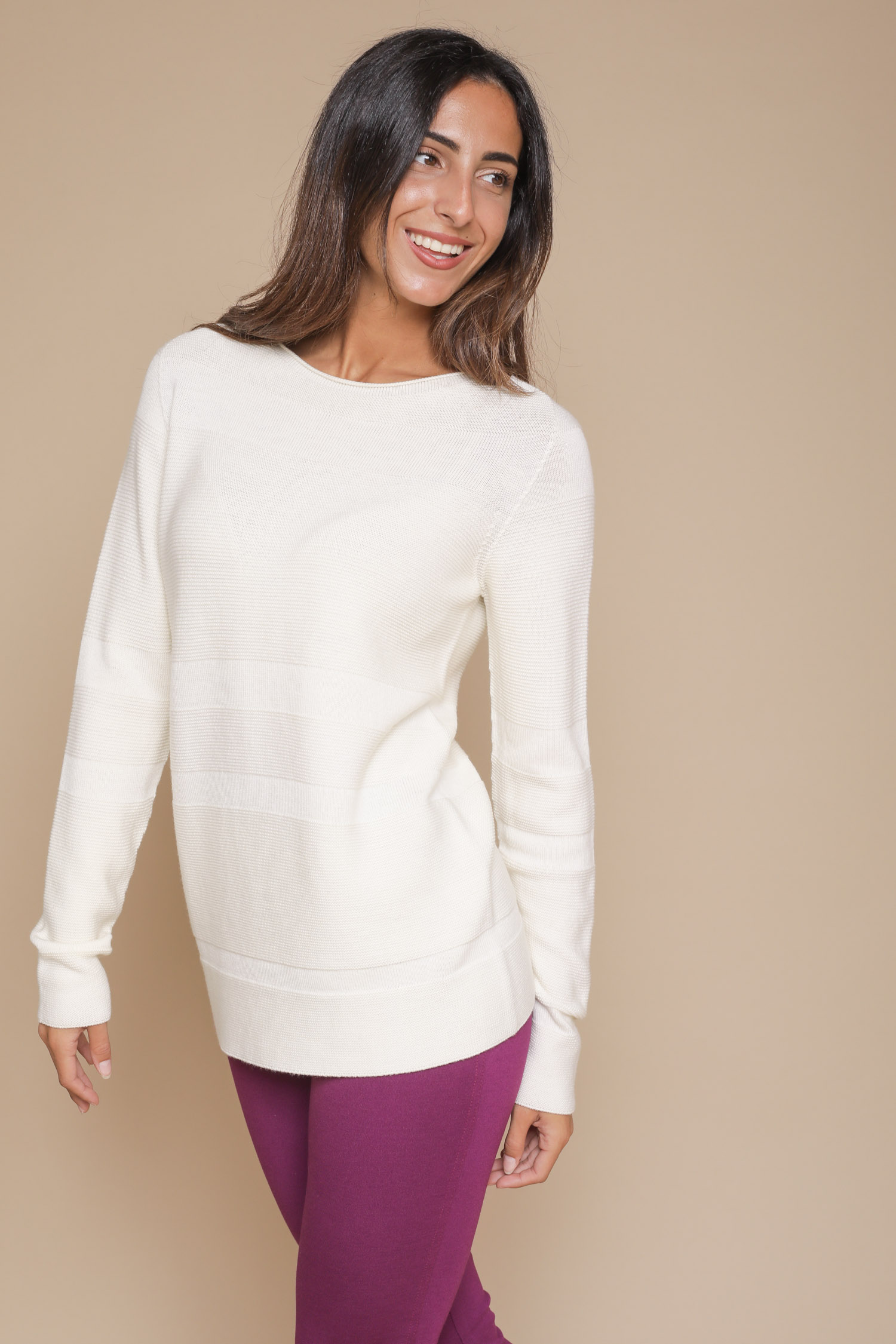 HOME > Outlet > MAGLIE > MAGLIA 100% LANA IN LINKS CON RIGHE A TRAMA DIVERSA