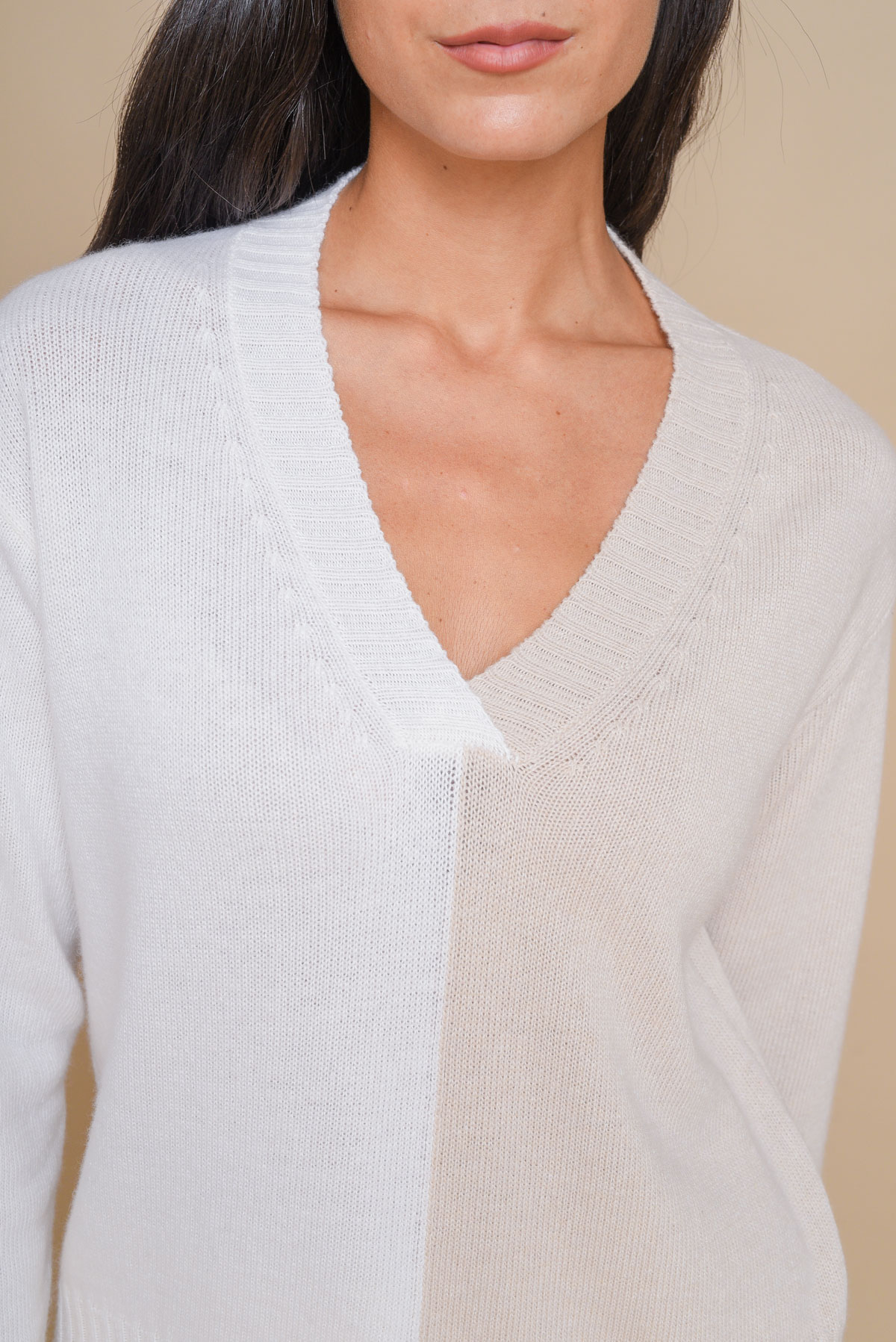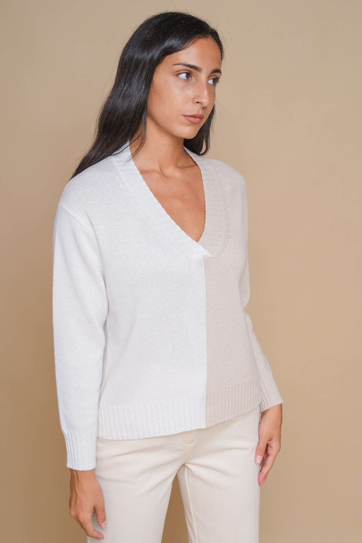 MAGLIA CON SCOLLO A V IN LANA, VISCOSA E CASHMERE